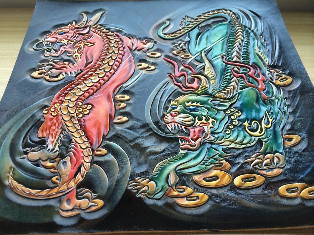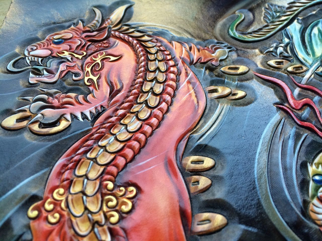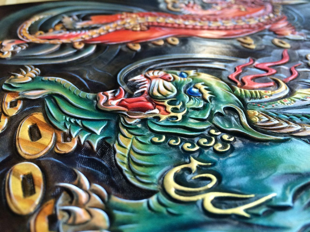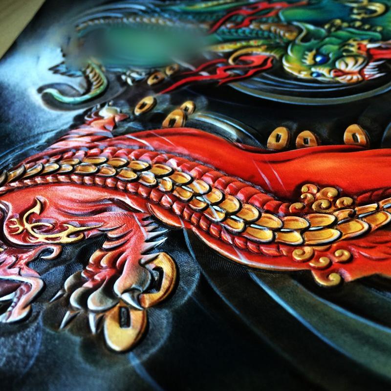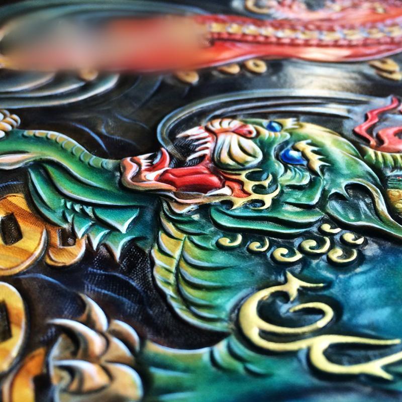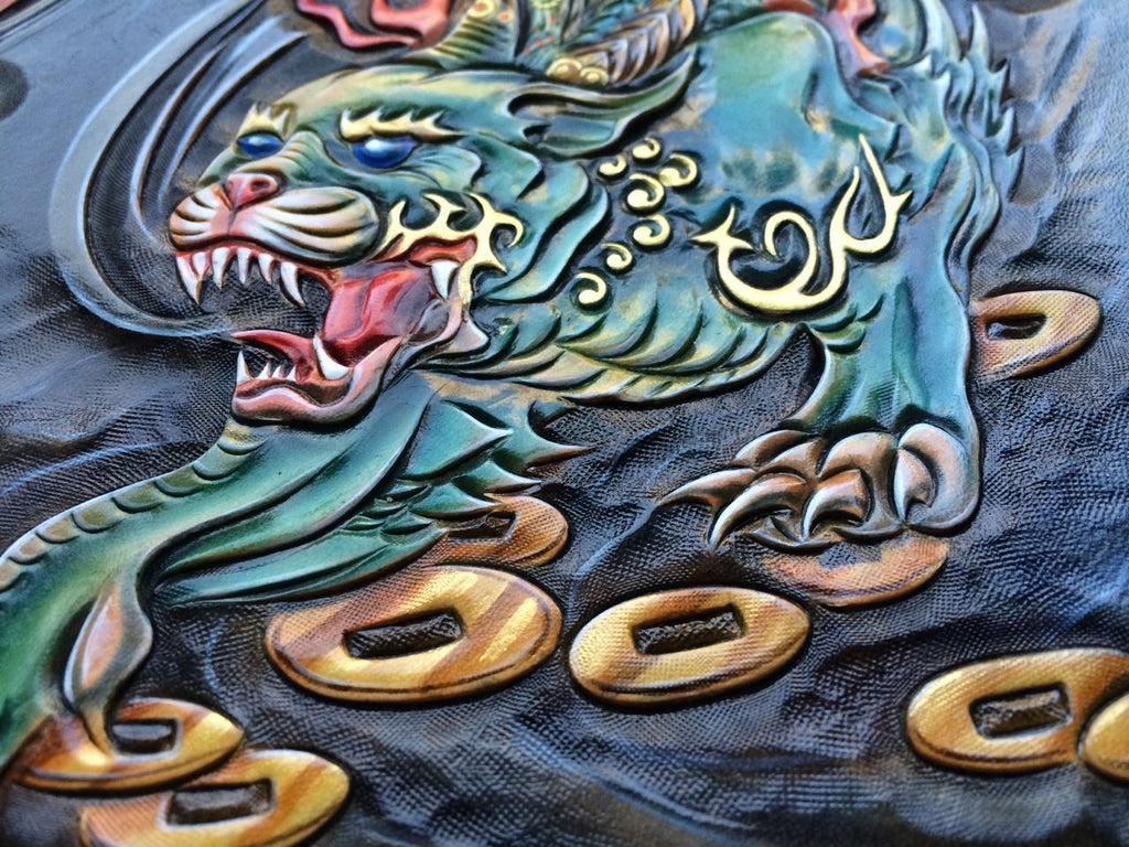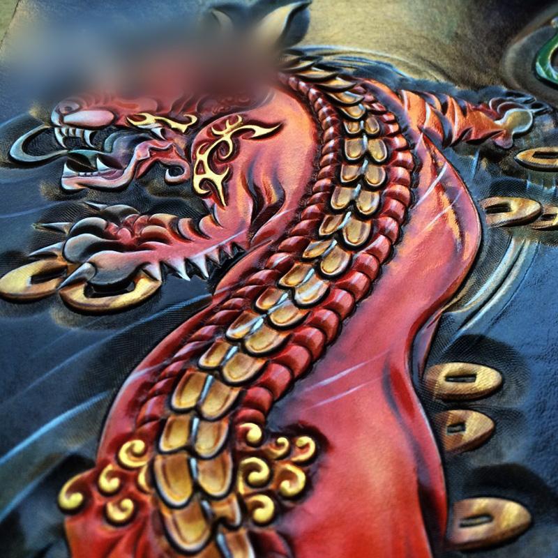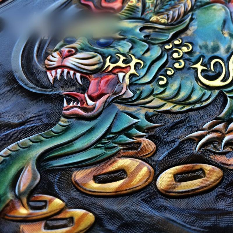 Design: Handmade Leather Mens Clutch Cool Tooled Chinese Monster Wallet Zipper Clutch Wristlet Wallet for Men