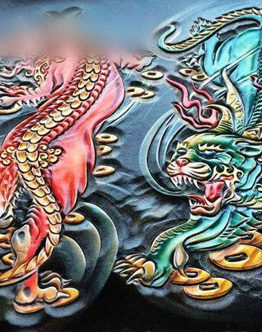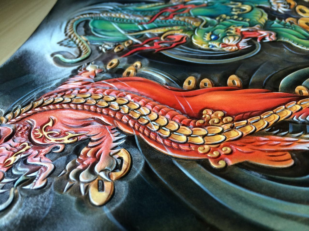 Style: Handmade Leather Mens Clutch Cool Tooled Chinese Monster Wallet Zipper Clutch Wristlet Wallet for Men