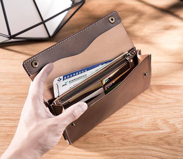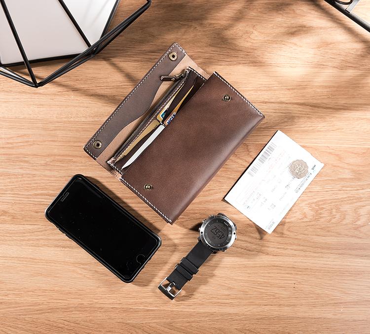 Design: Handmade Leather Mens Clutch Wallet Cool Leather Wallet Long Phone Wallets for Men