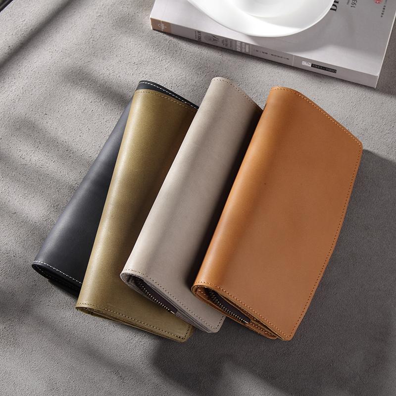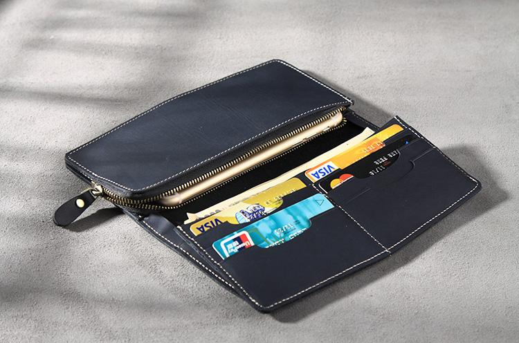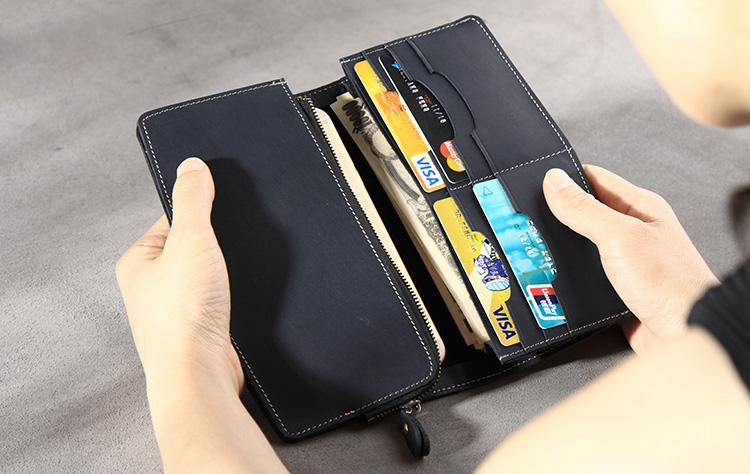 Design: Handmade Leather Mens Clutch Wallet Cool Leather Wallet Long Phone Wallets for Men