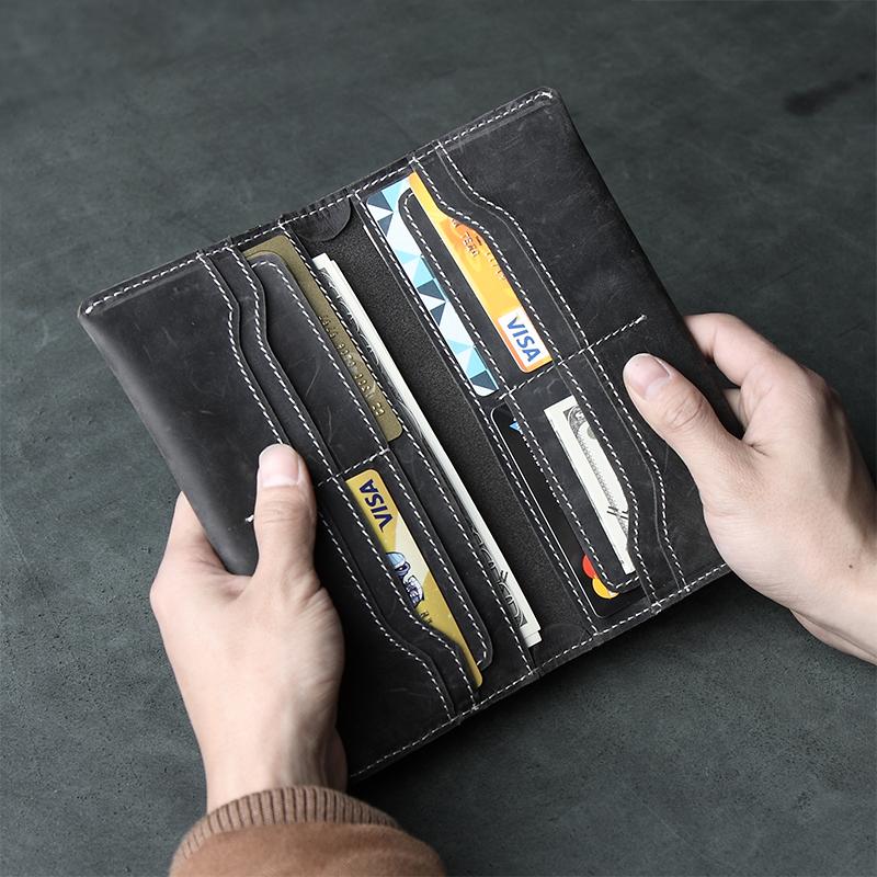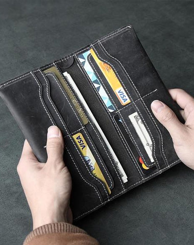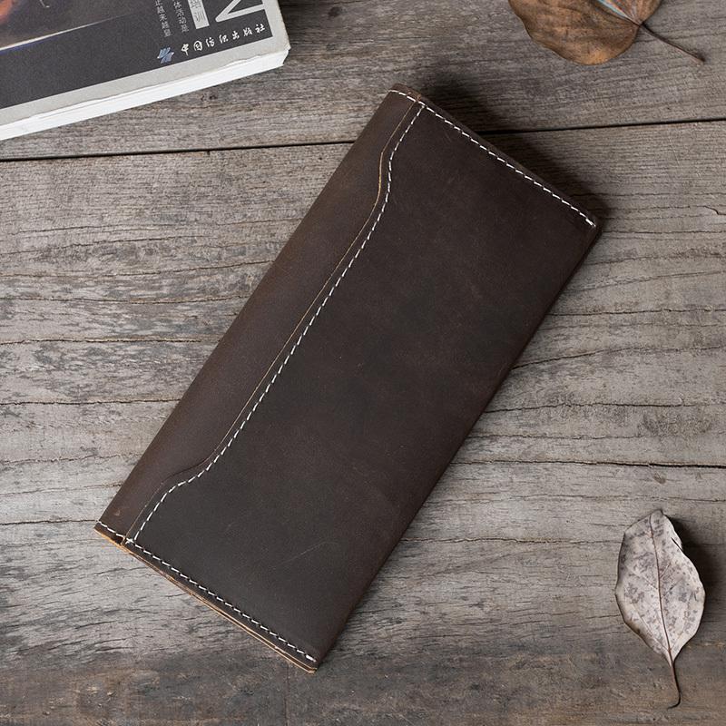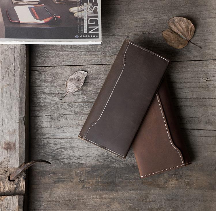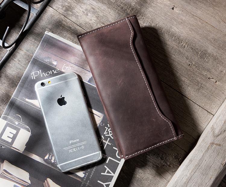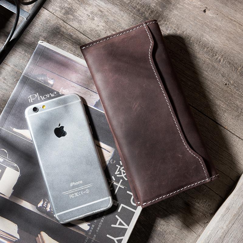 Style: Handmade Leather Mens Clutch Wallet Cool Leather Wallet Long Phone Wallets for Men