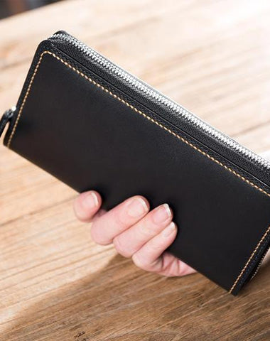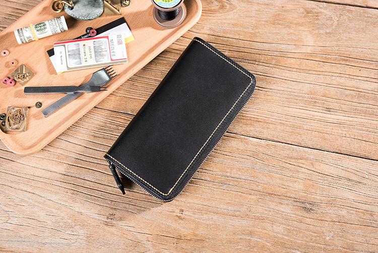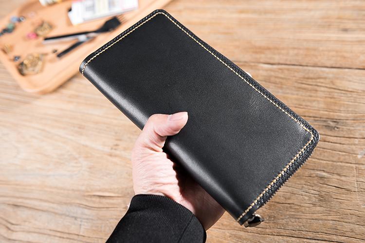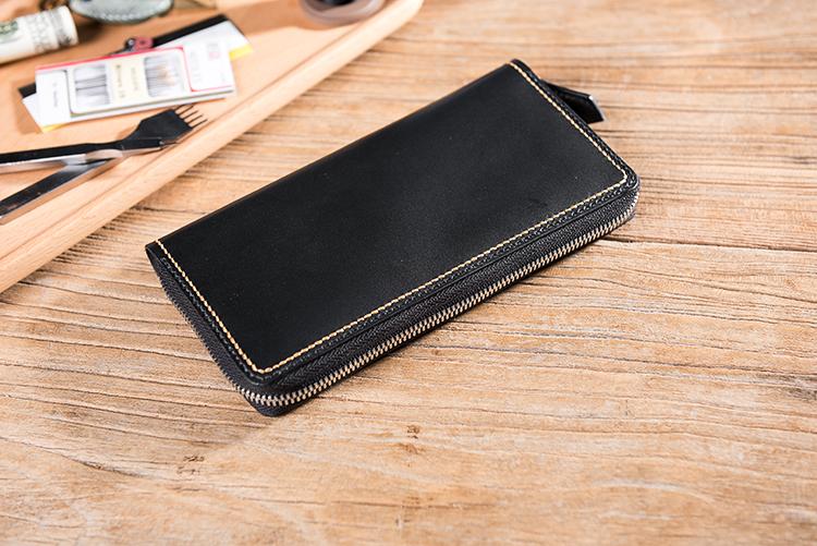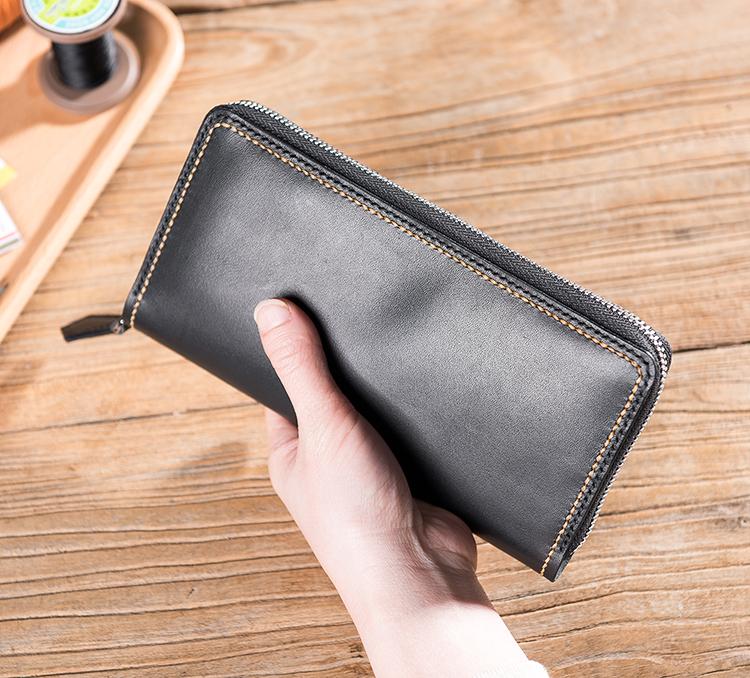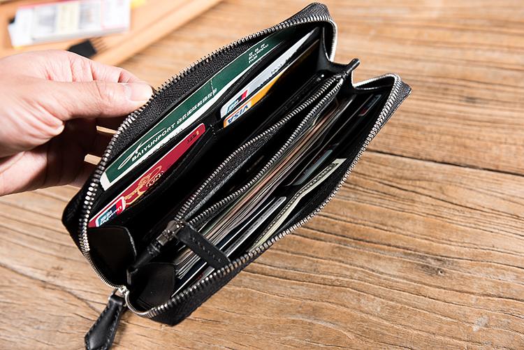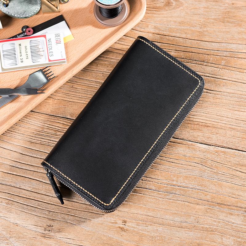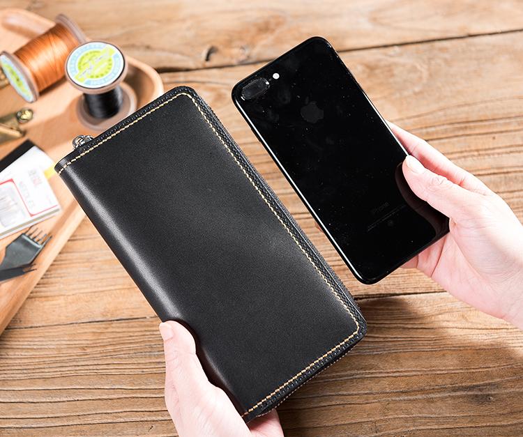 Design: Handmade Leather Mens Clutch Wallet Cool Leather Wallet Long Zipper Phone Wallets for Men