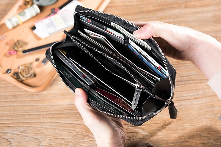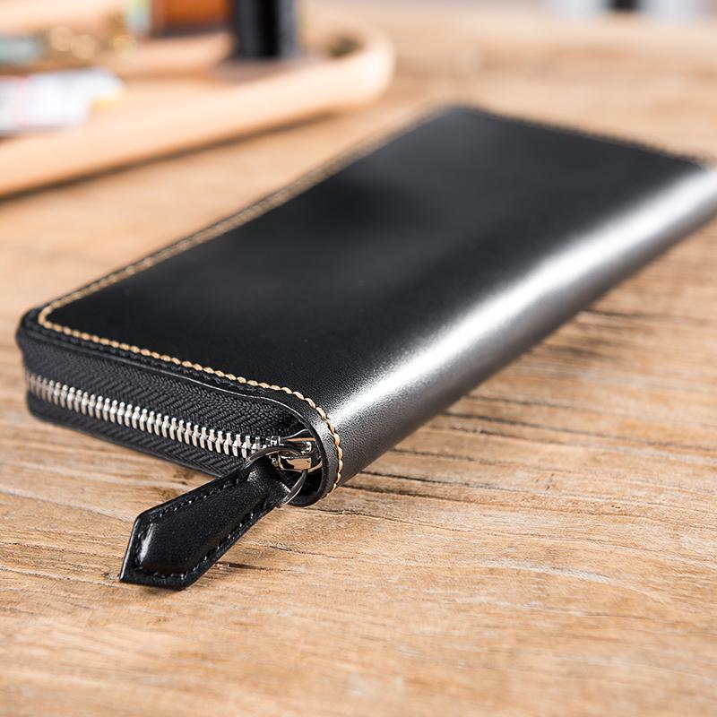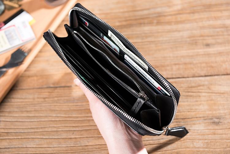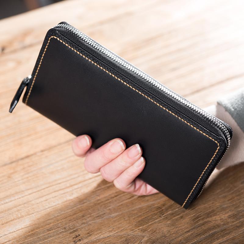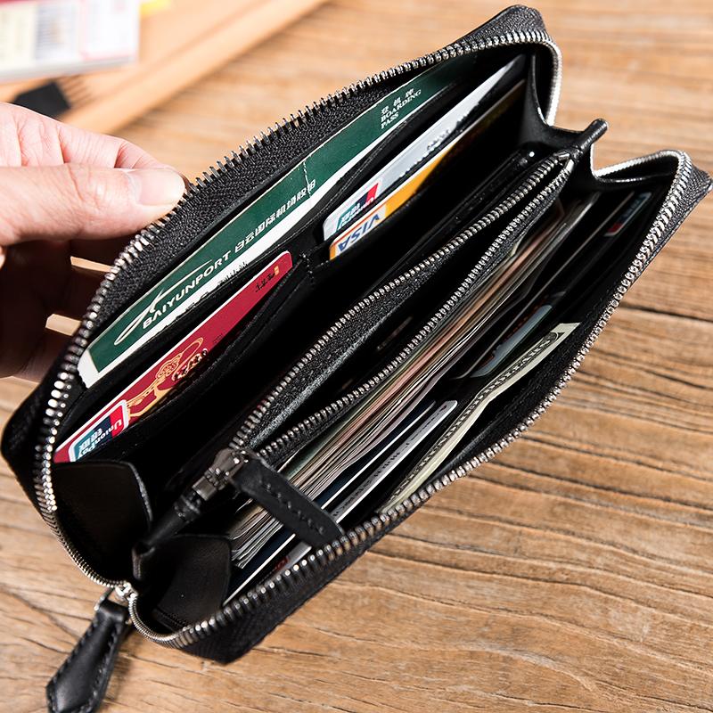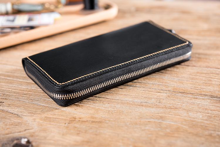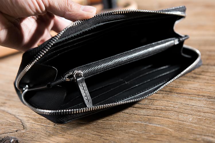 Design: Handmade Leather Mens Clutch Wallet Cool Leather Wallet Long Zipper Phone Wallets for Men