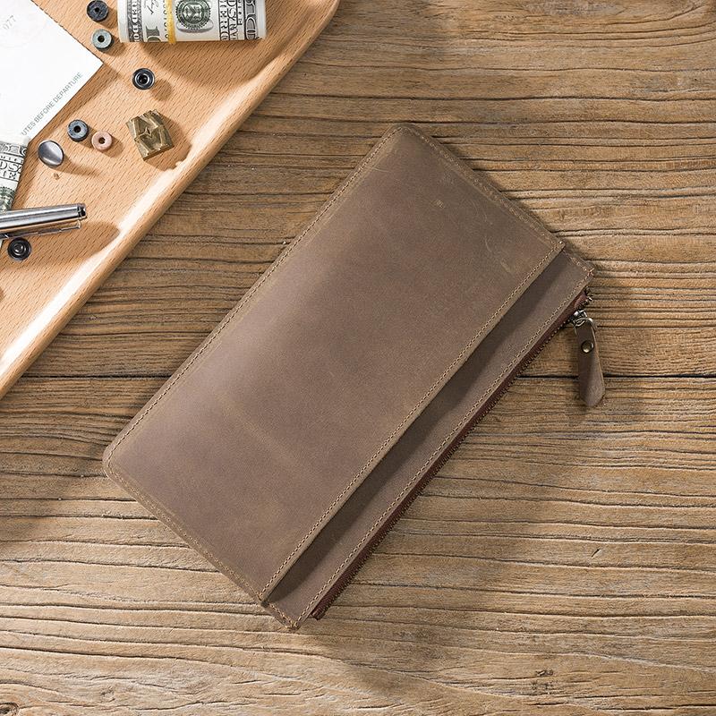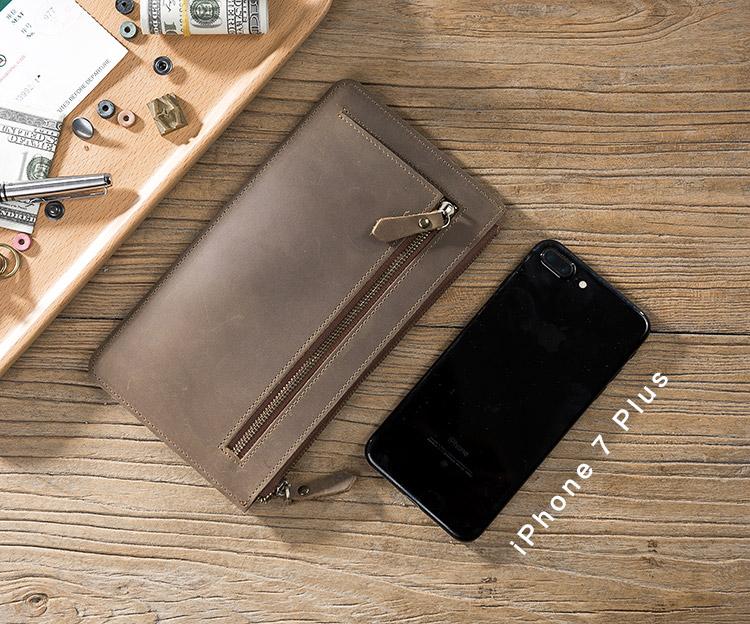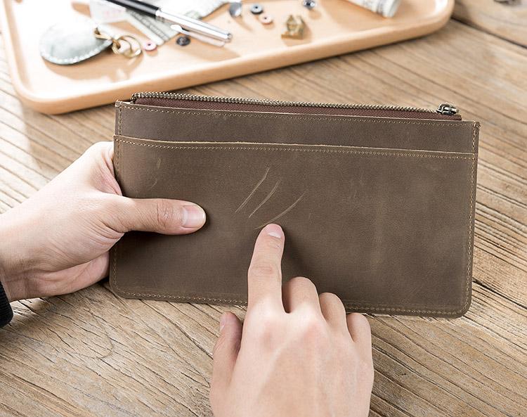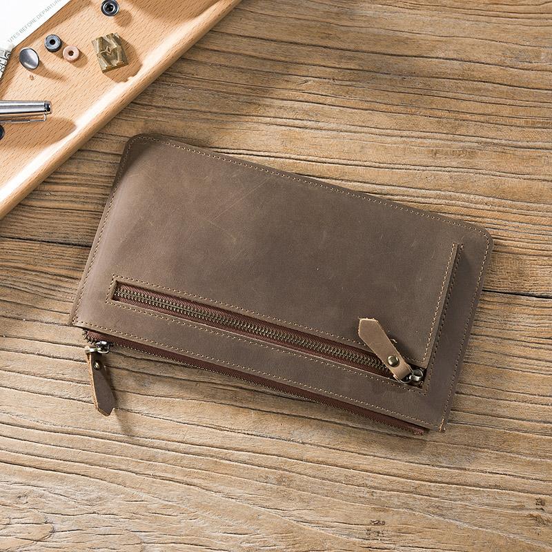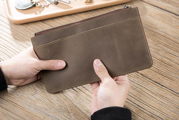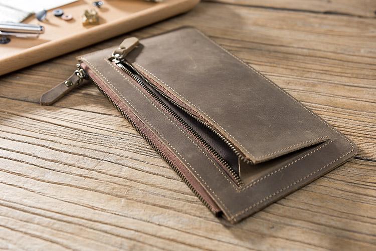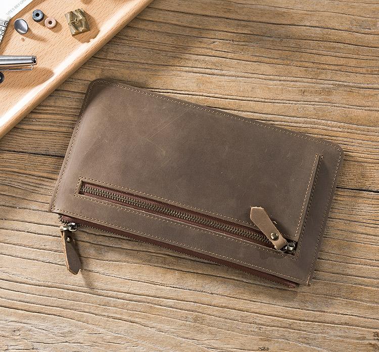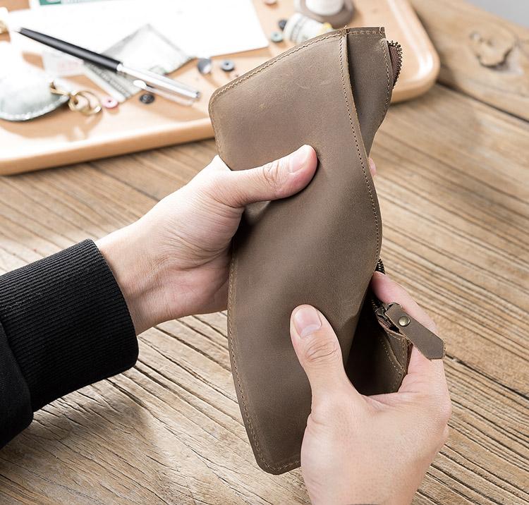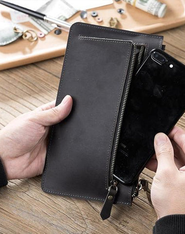 Style: Handmade Leather Mens Clutch Zipper Wallet Cool Leather Wallet Long Phone Wallets for Men