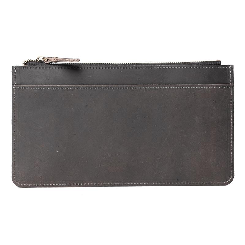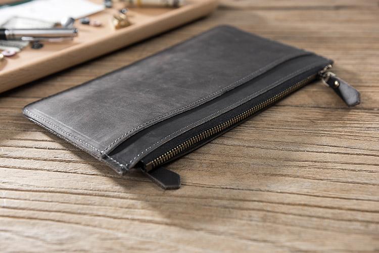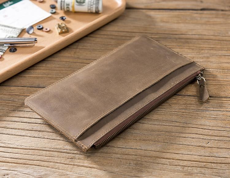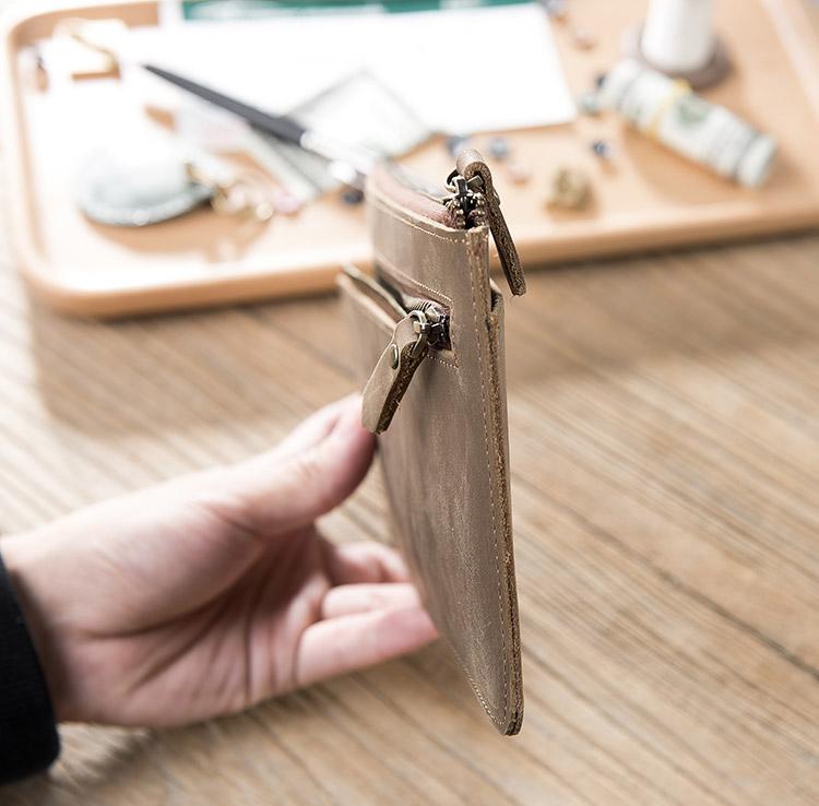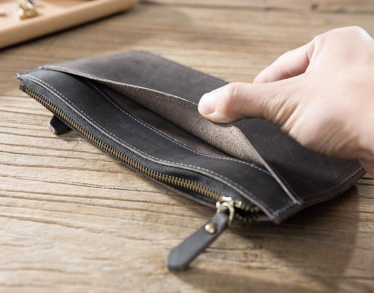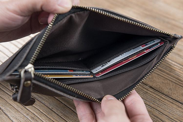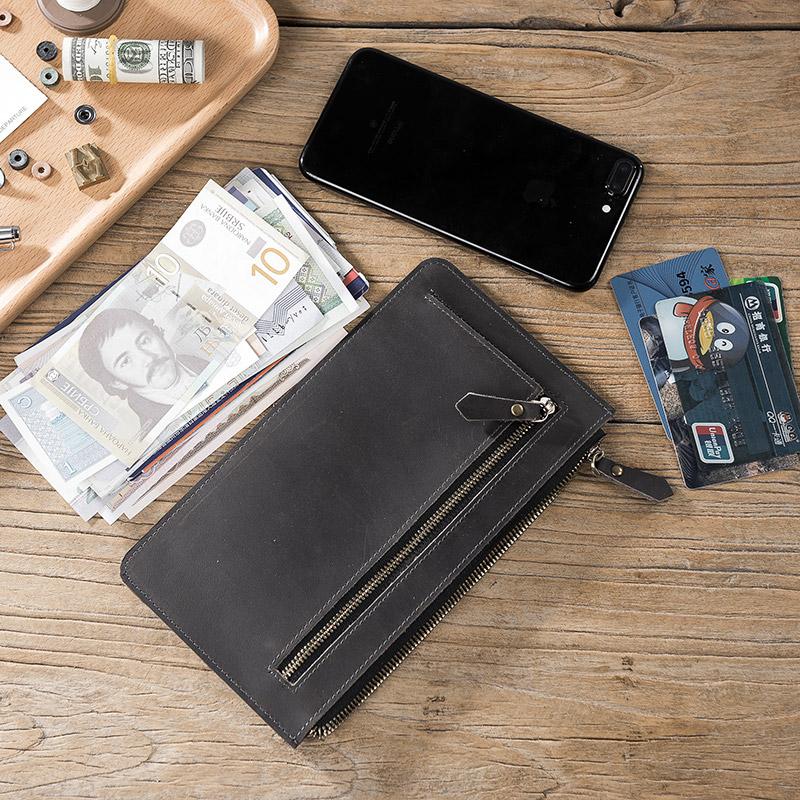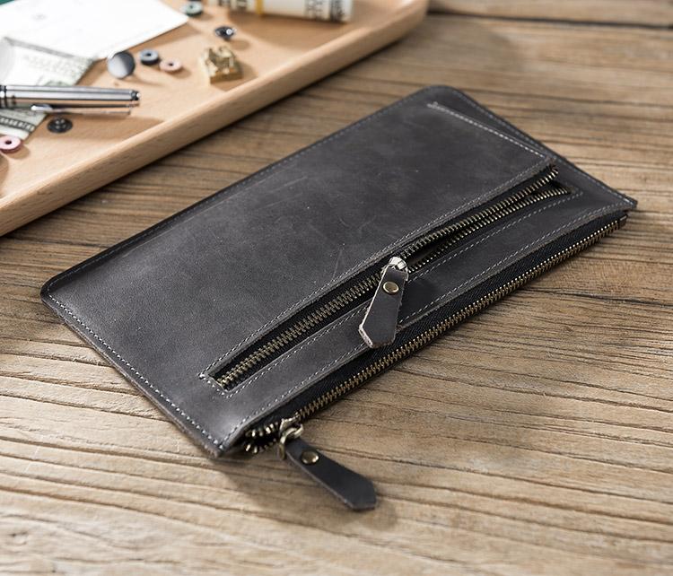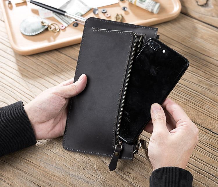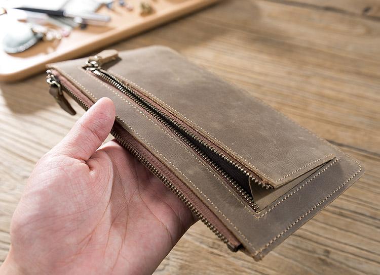 Design: Handmade Leather Mens Clutch Wallet Cool Zipper Leather Wallet Long Phone Wallets for Men