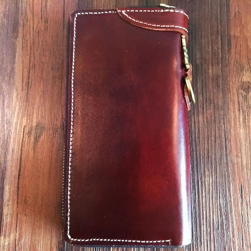 Style: Handmade Leather Mens Clutch Wallet Cool Tiger Tooled Chain Wallet Biker Wallets for Men