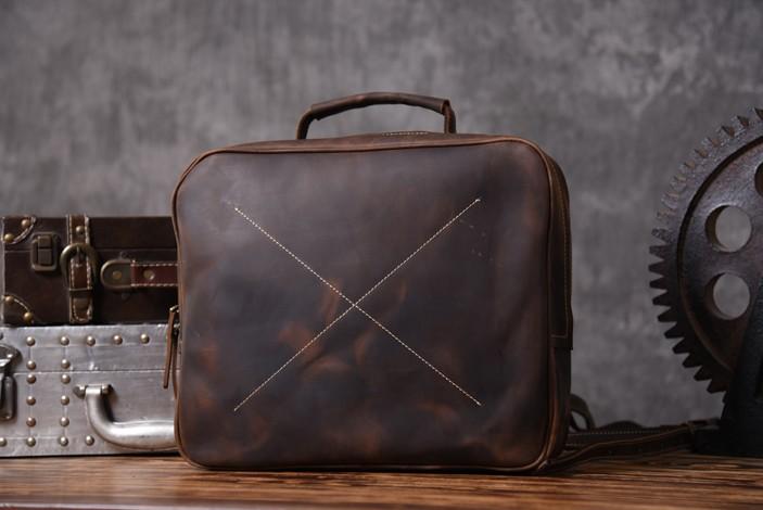Style: Handmade Leather Mens Cool Backpack Messenger Bag Briefcase Work Bag Business Bag for men