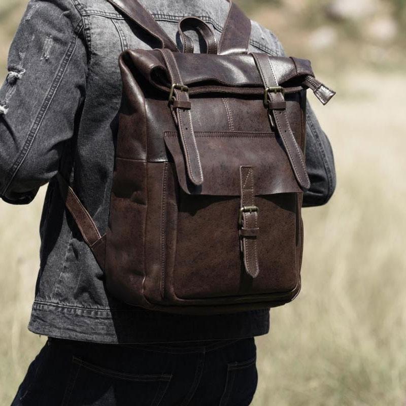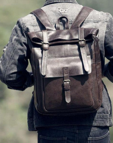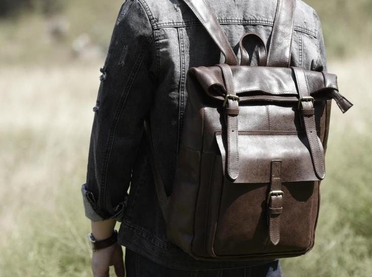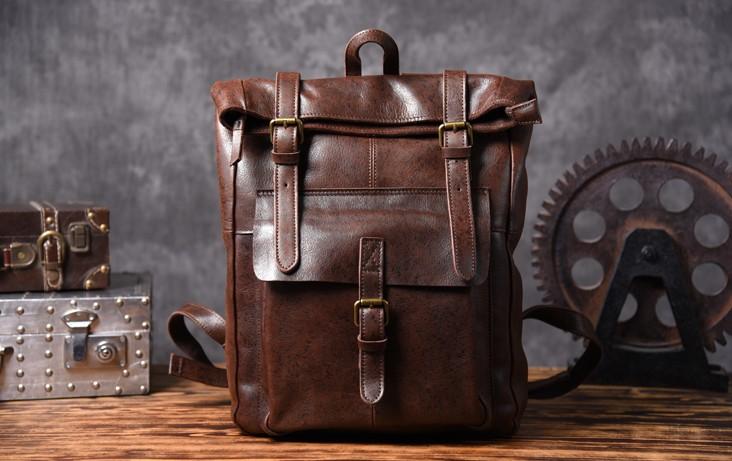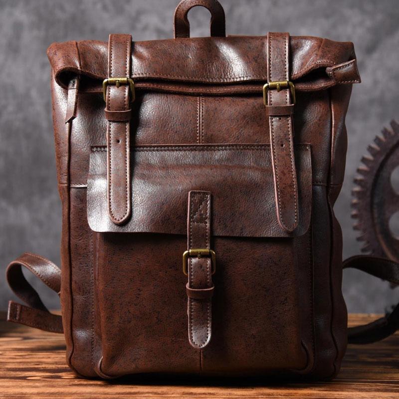 Style: Handmade Leather Mens Cool Backpack Sling Bag Large Coffee Travel Bag Hiking Bag for men