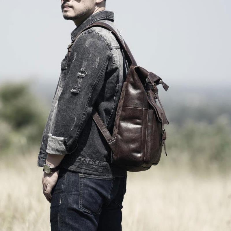 Design: Handmade Leather Mens Cool Backpack Sling Bag Large Coffee Travel Bag Hiking Bag for men