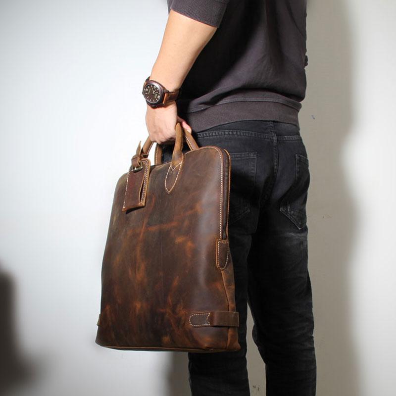 Design: Handmade Leather Mens Cool Business Bag Briefcase Work Bag Laptop Bag for men
