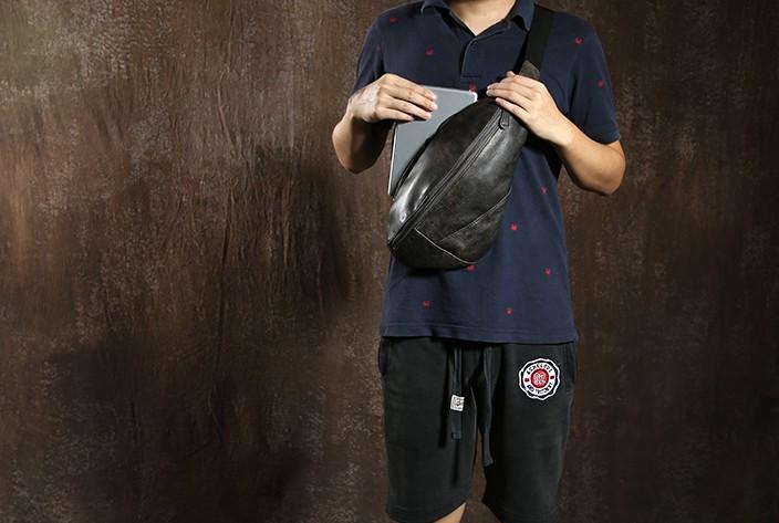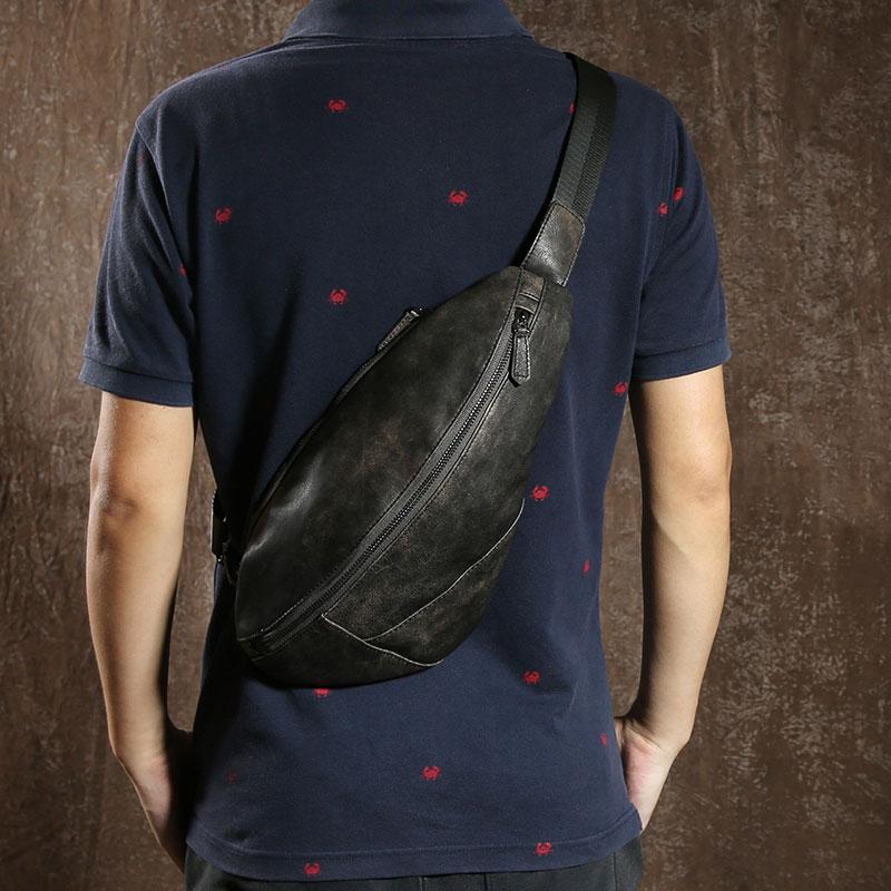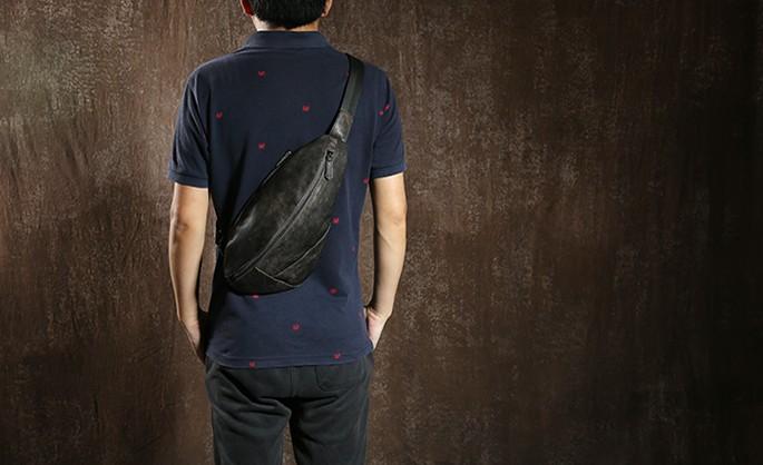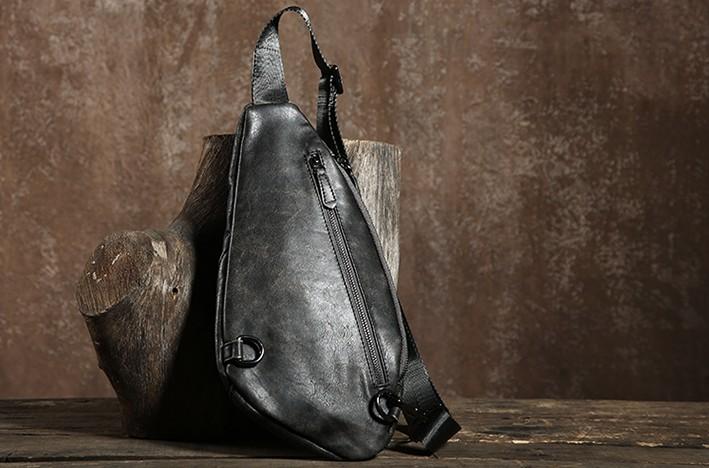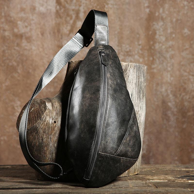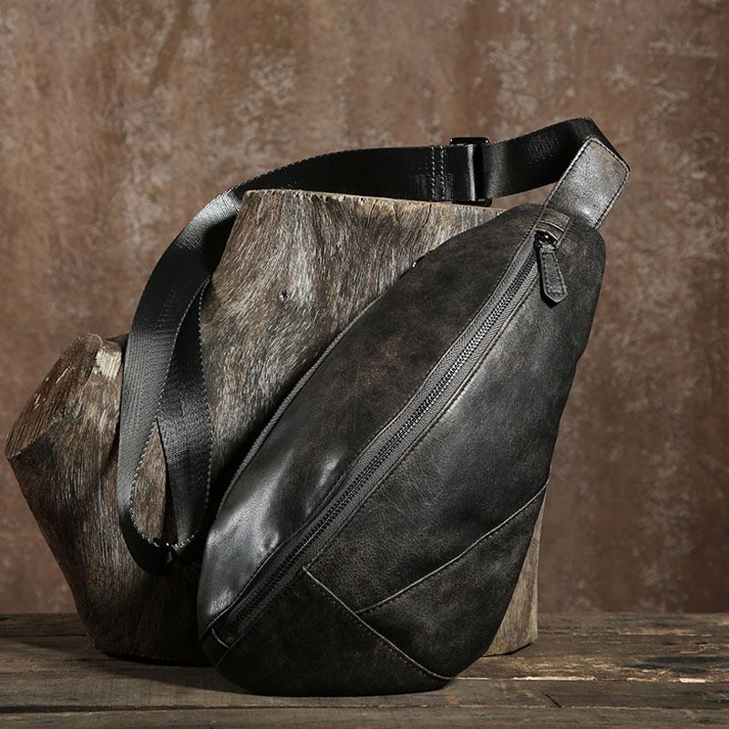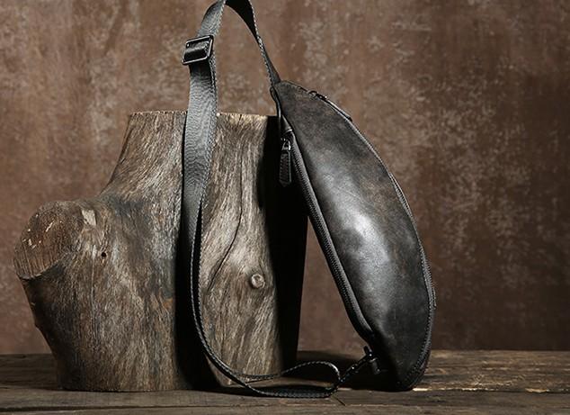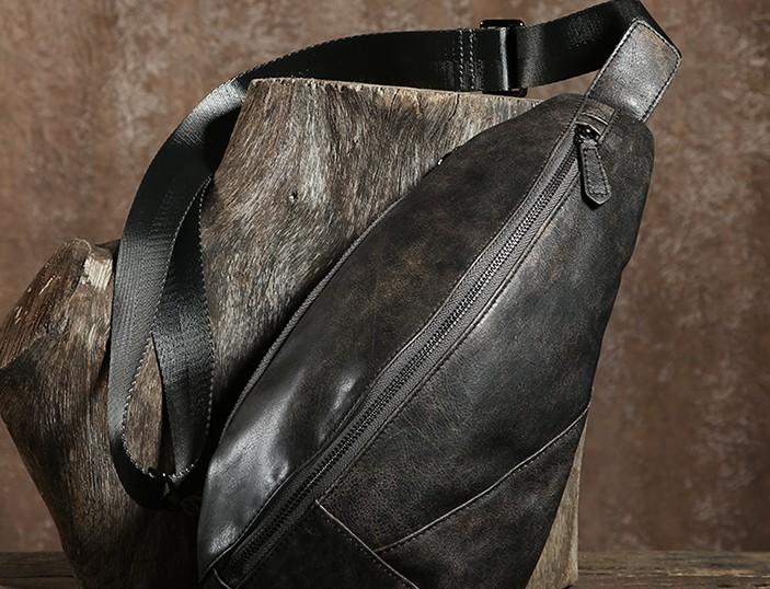 Style: Handmade Leather Mens Cool Chest Bag Sling Bag Crossbody Bag Travel Bag Hiking Bag for men