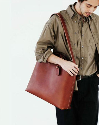 Design: Handmade Leather Mens Cool Handbag Tote Shoulder Bag Work Bag Laptop Bag for Men