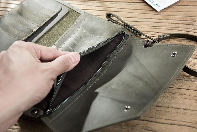 Design: Handmade Leather Mens Cool Long Chain Wallet Phone Biker Trucker Wristlet Wallet