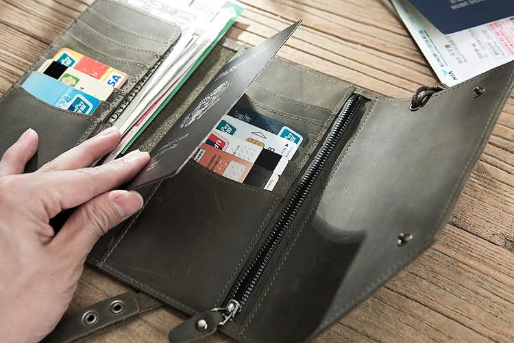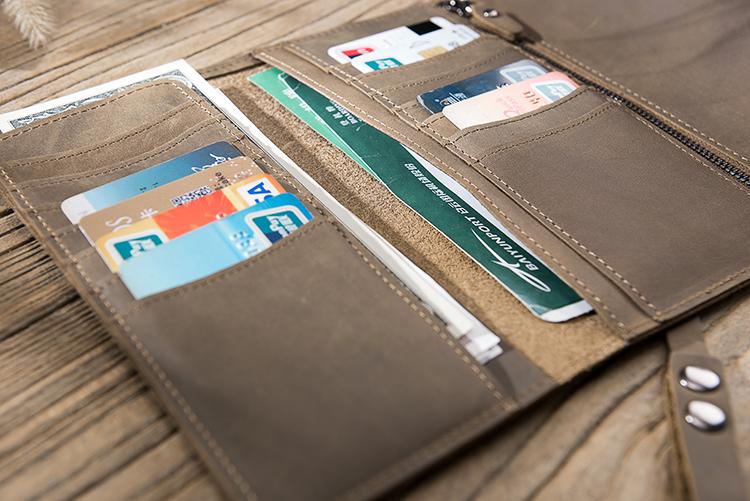 Slots: 2 full size bill slot, 12 card holders,1 zipper slot