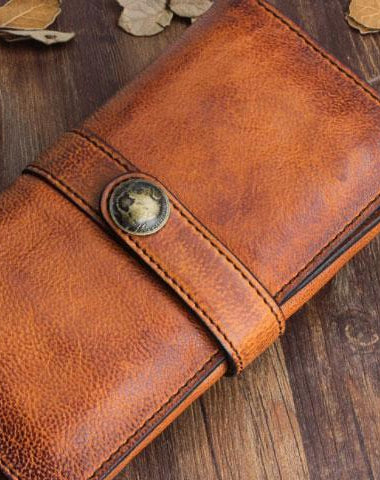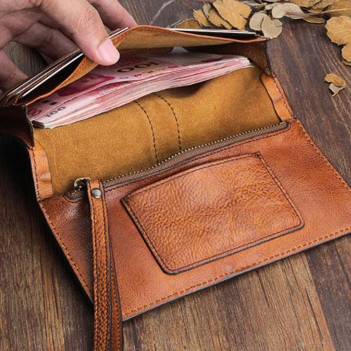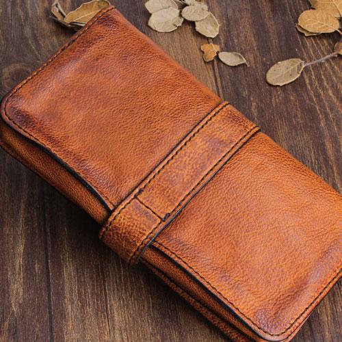 Handmade Leather Mens Cool Long Leather Wallet Bifold Clutch Wallet for Men