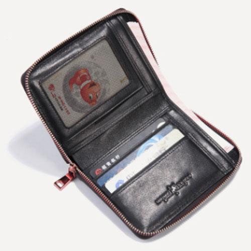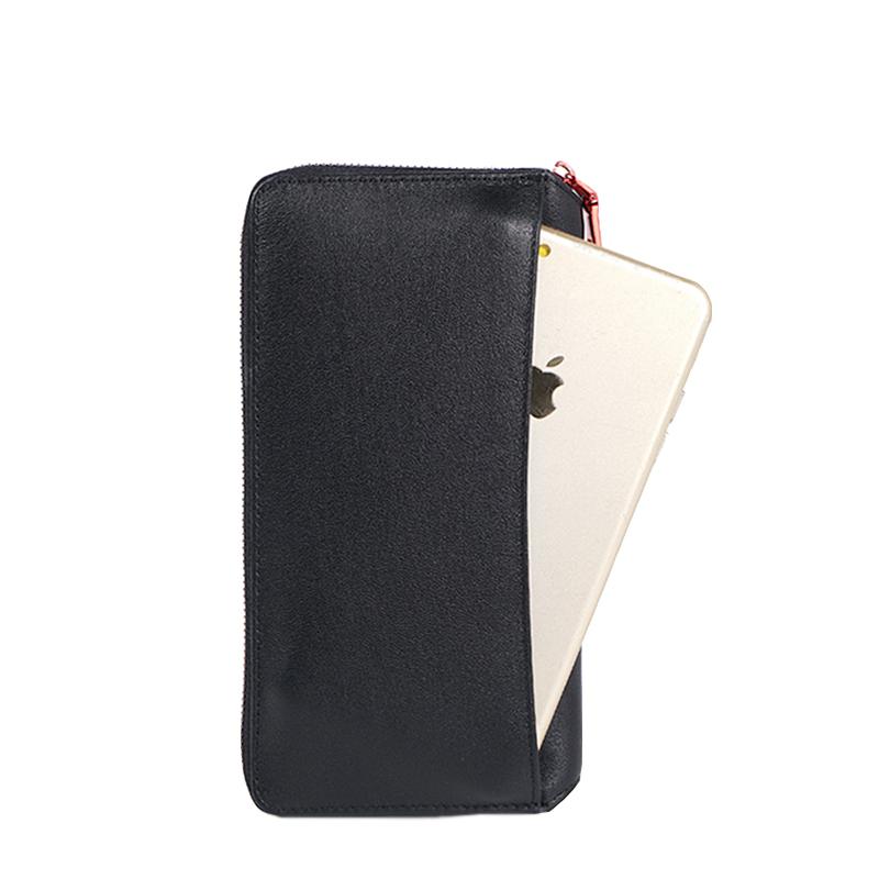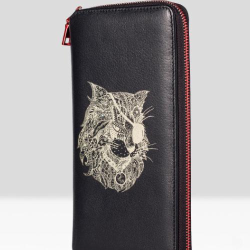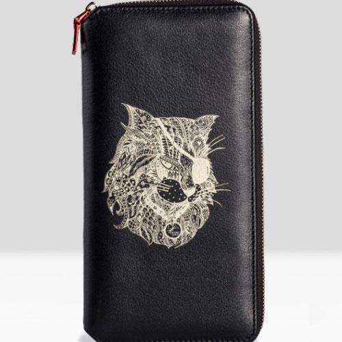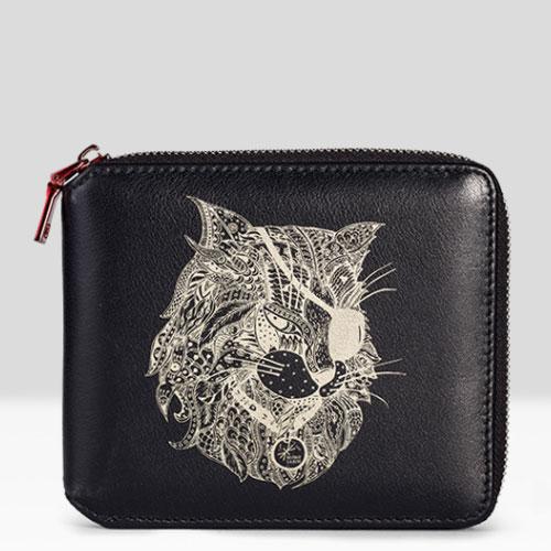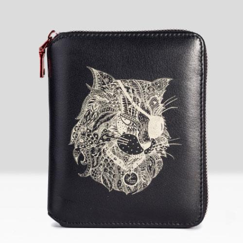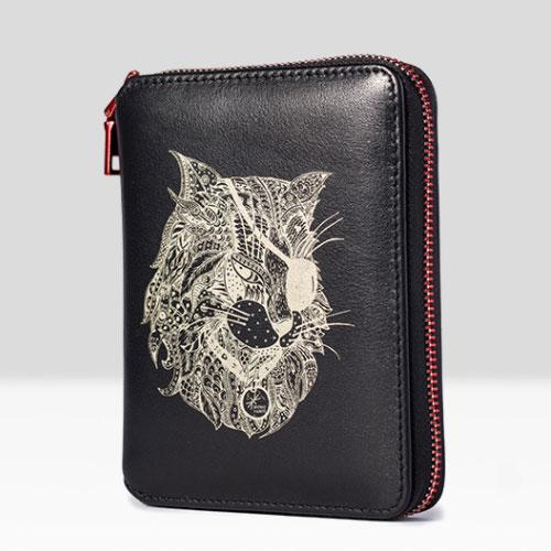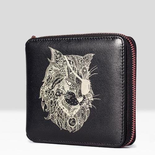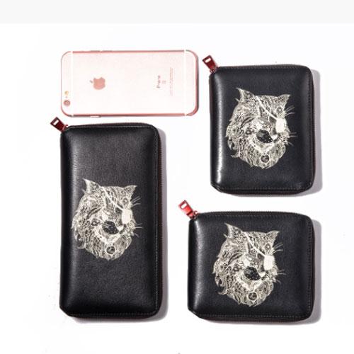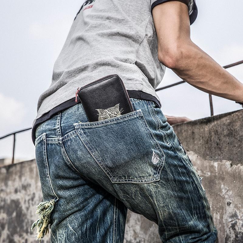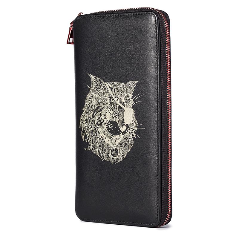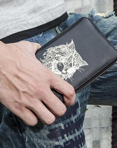 Design: Handmade Leather Cat Mens Cool Long Leather Wallet Bifold Clutch Wallet for Men