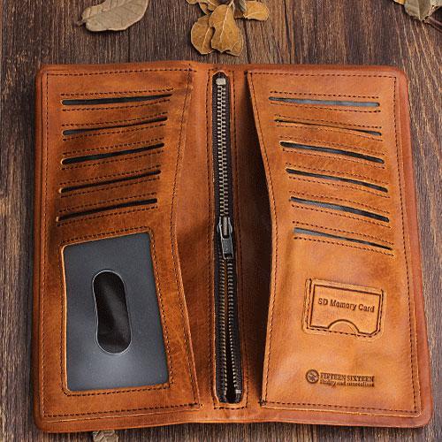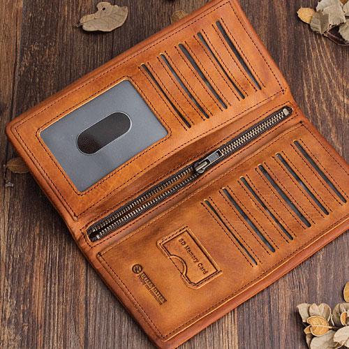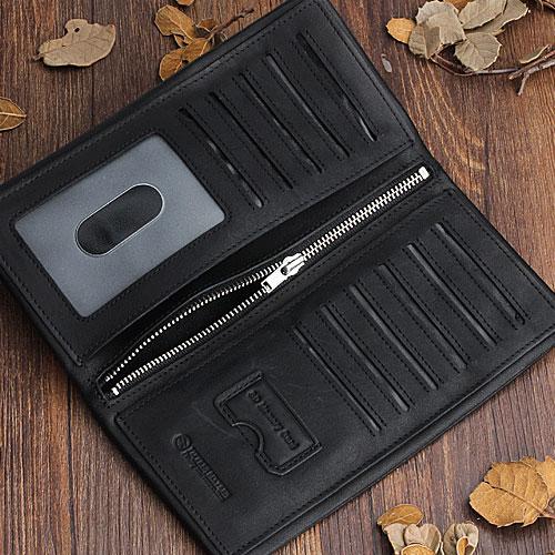 Design: Handmade Leather Mens Cool Long Leather Wallet Bifold Clutch Wallet for Men