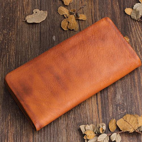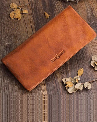 Handmade Leather Mens Cool Long Leather Wallet Bifold Clutch Wallet for Men