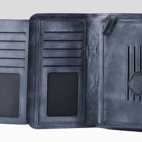 Slots: 1 full size bill slot, 13 card holders, 1 coin slot, 1 zipper slot