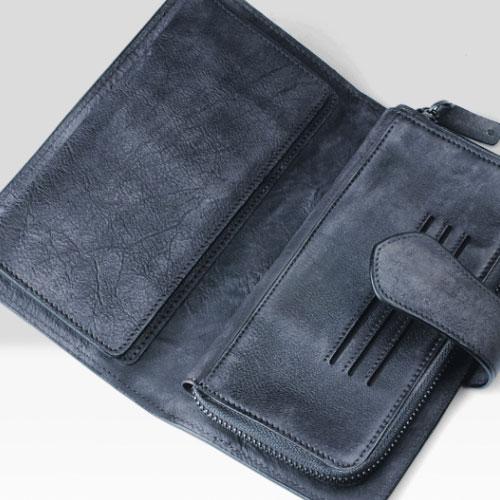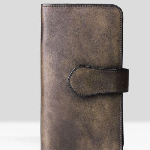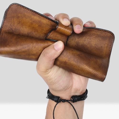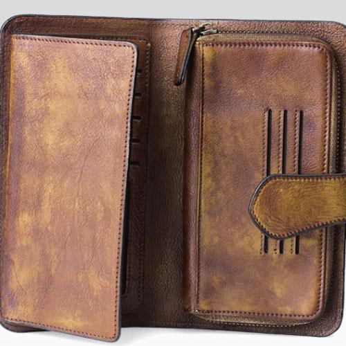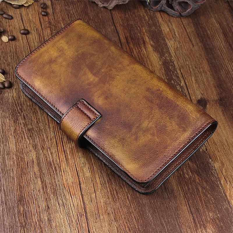 Design: Handmade Leather Mens Cool Long Leather Wallet Trifold Clutch Wallet for Men