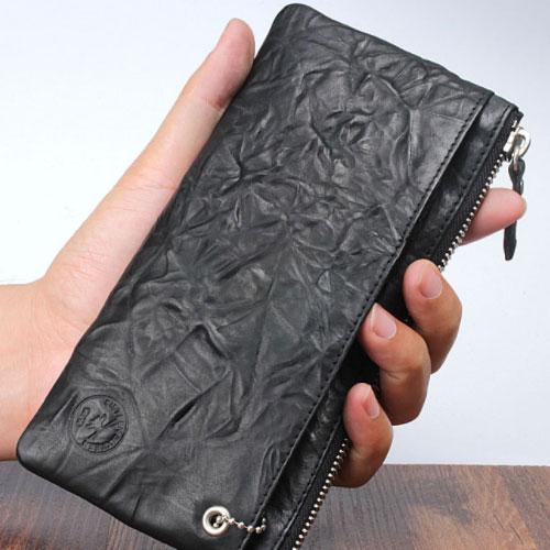 Design: Handmade Leather Mens Cool Long Leather Wallet Detachable Clutch Wallet for Men