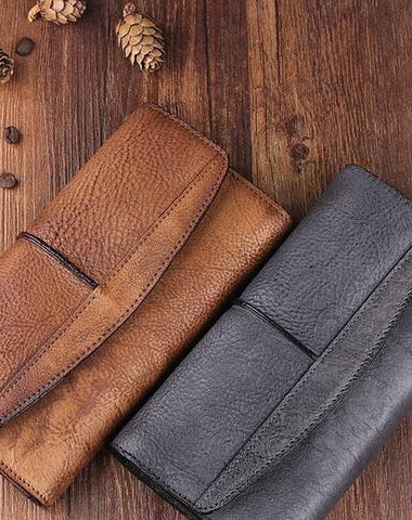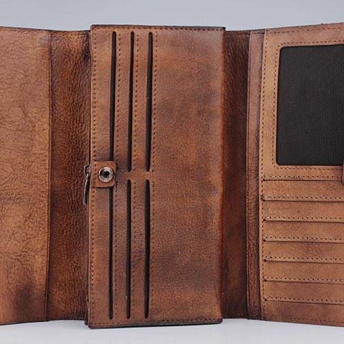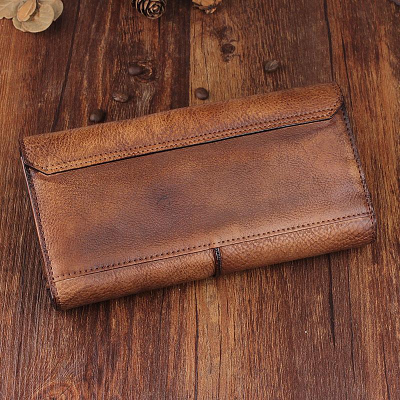 Design: Handmade Leather Mens Cool Long Leather Wallet Trifold Clutch Wallet for Men