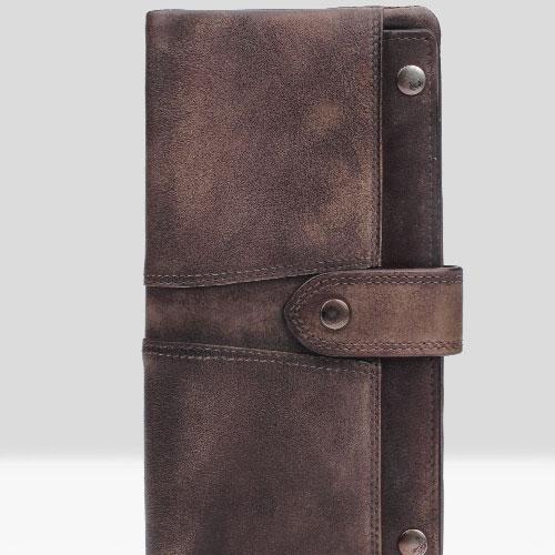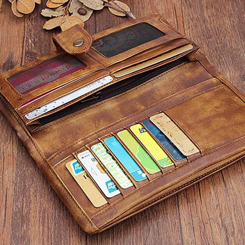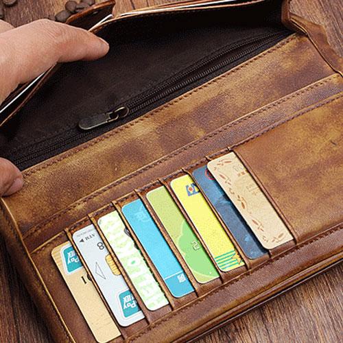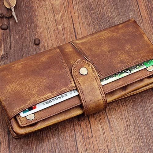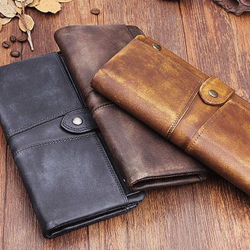 Design: Handmade Leather Mens Cool Long Leather Wallet Wristlet Clutch Wallet for Men