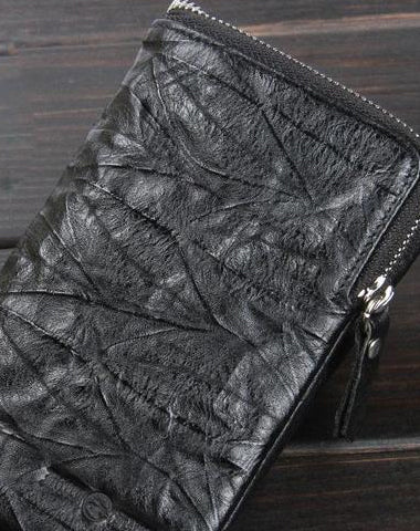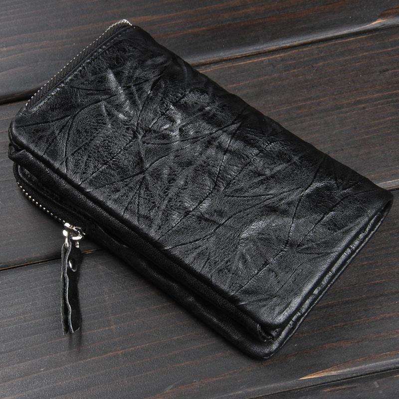 Design: Handmade Leather Mens Cool Long Leather Wallet Zipper Wristlet Clutch Wallet