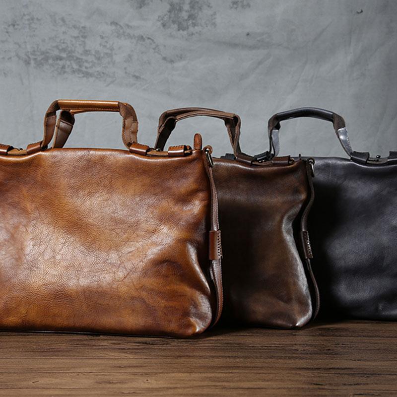 Design: Handmade Leather Mens Cool Messenger Bag Briefcase Work Bag Business Bag Laptop Bag for men