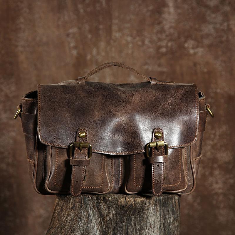 Style: Handmade Leather Mens Cool Shoulder Bag Messenger Bag Camera Bag Cycling Bag for men