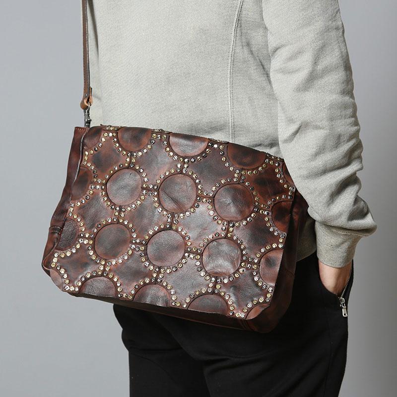 Style: Handmade Leather Mens Cool Shoulder Bag Messenger Bag Chest Bag Bike Bag Cycling Bag for men