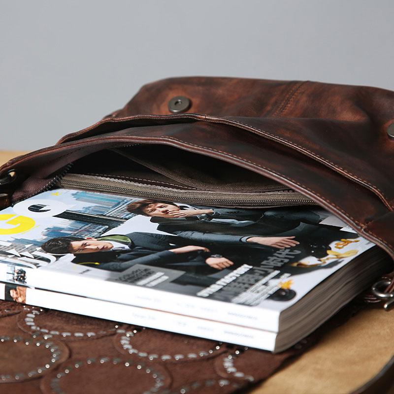 Design: Handmade Leather Mens Cool Shoulder Bag Messenger Bag Chest Bag Bike Bag Cycling Bag for men