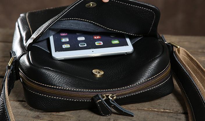 Design: Handmade Leather Mens Cool Shoulder Bag Messenger Bag Chest Bag Bike Bag Cycling Bag for men
