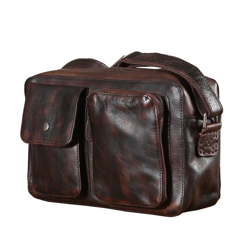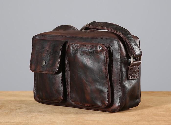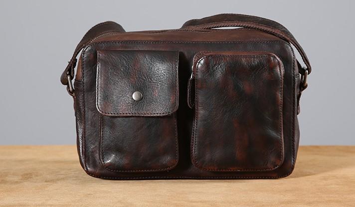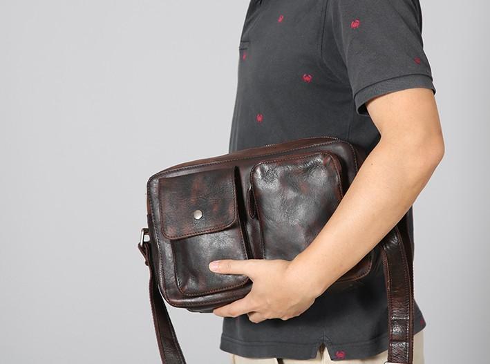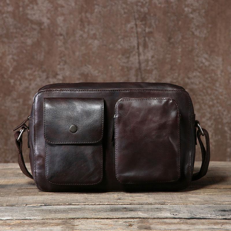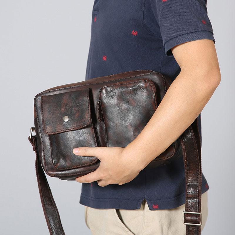 Design: Handmade Leather Mens Cool Shoulder Bag Messenger Bag Chest Bag Bike Bag Cycling Bag for men