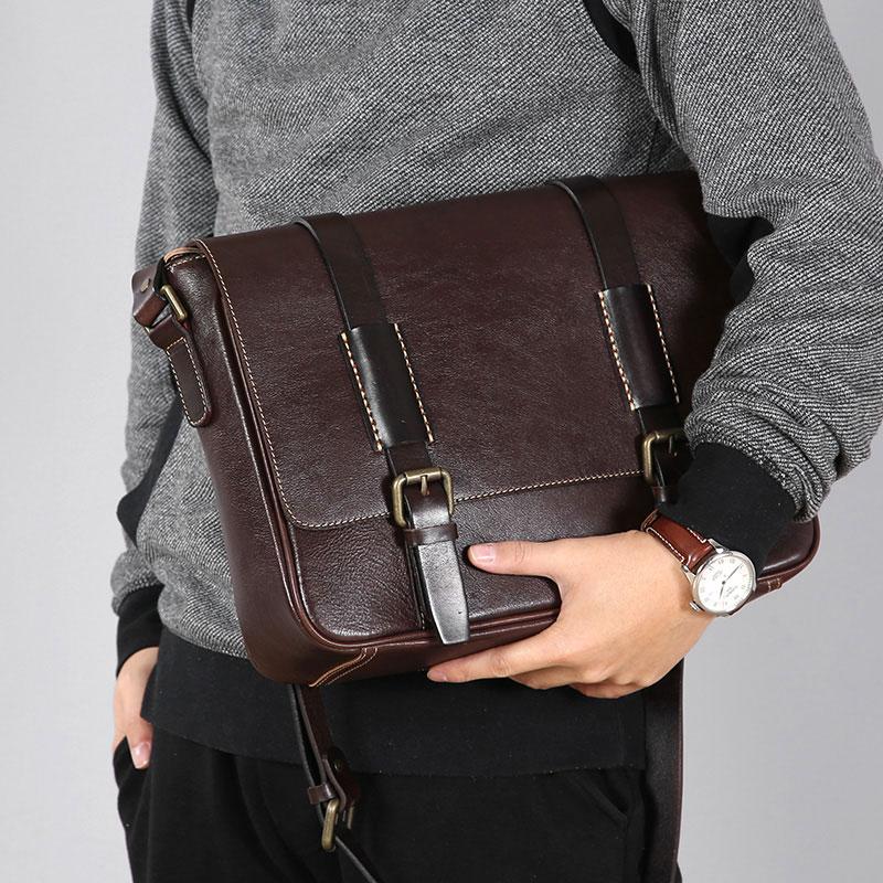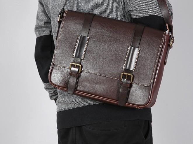 Handmade Leather Mens Cool Messenger Bags Shoulder Bag Cycling Bag for men
