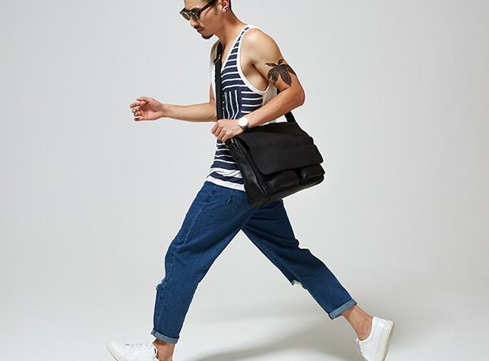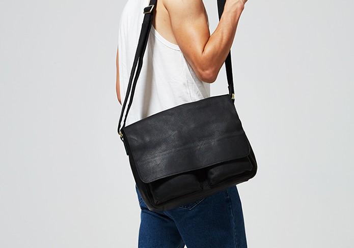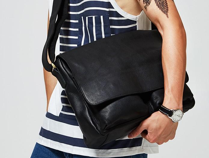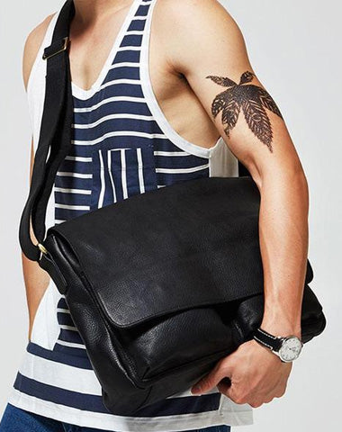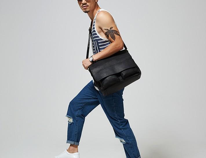 Design: Handmade Leather Mens Cool Shoulder Bag Messenger Bag Chest Bag Bike Bag Cycling Bag for men