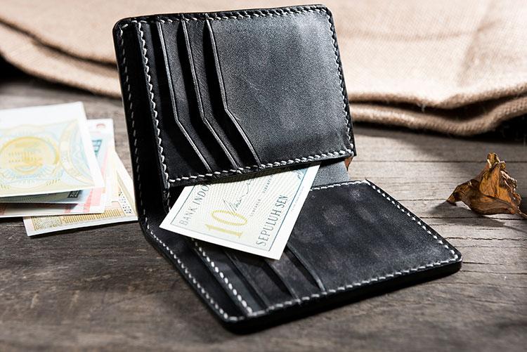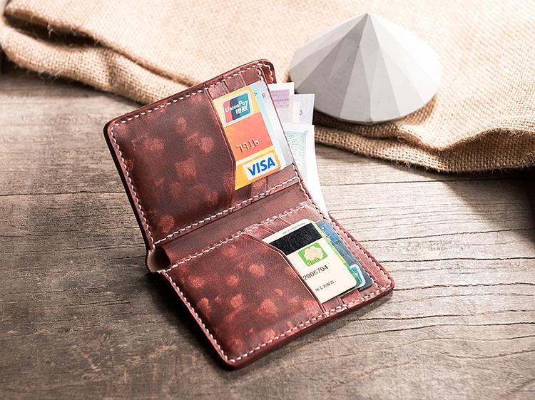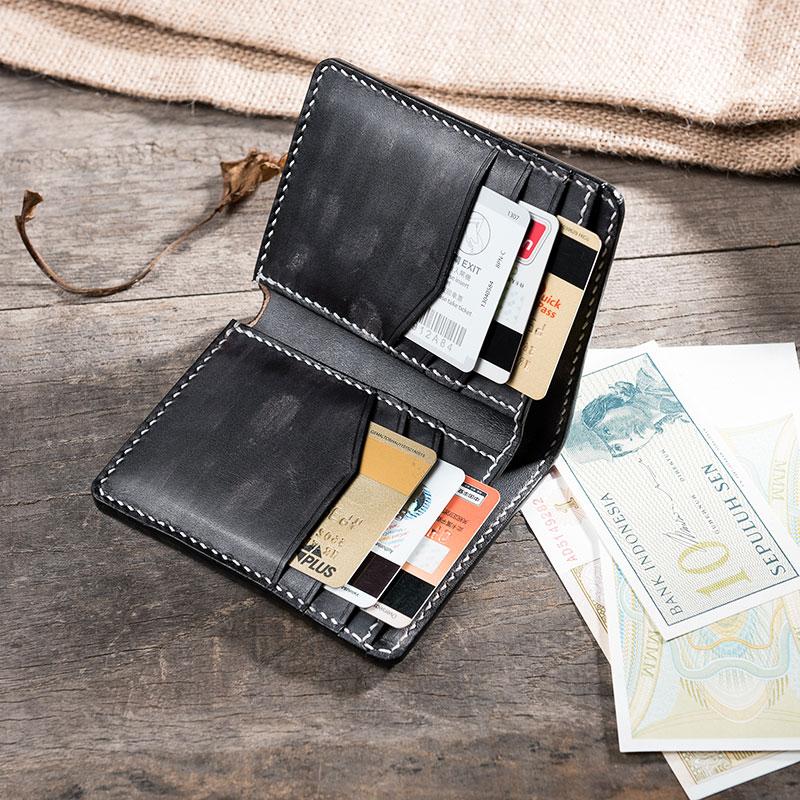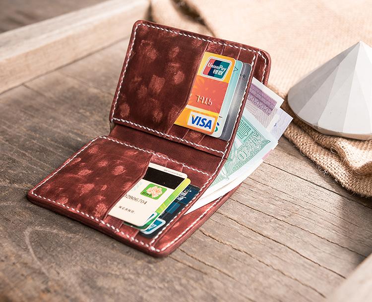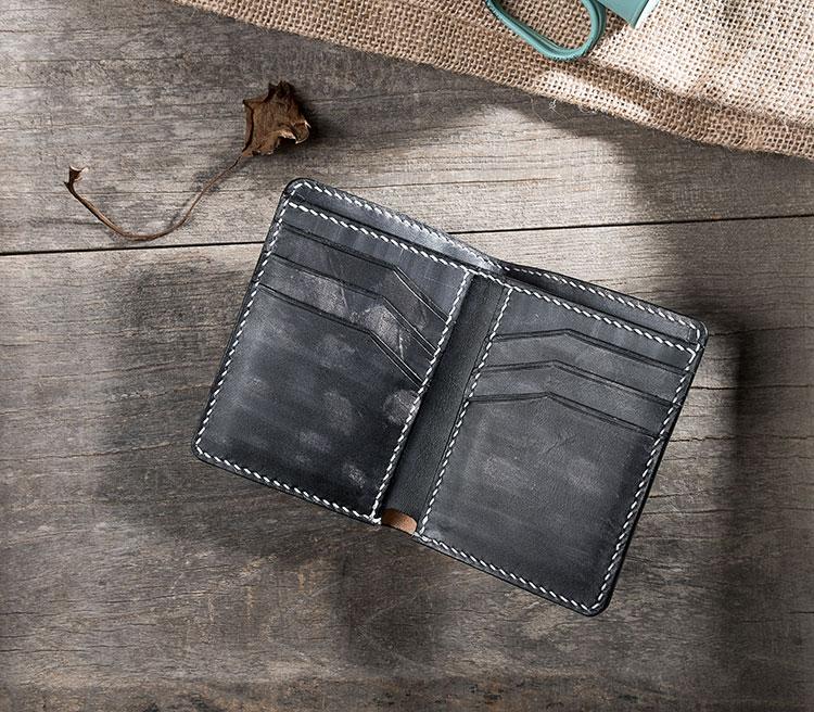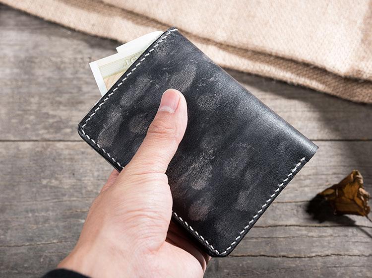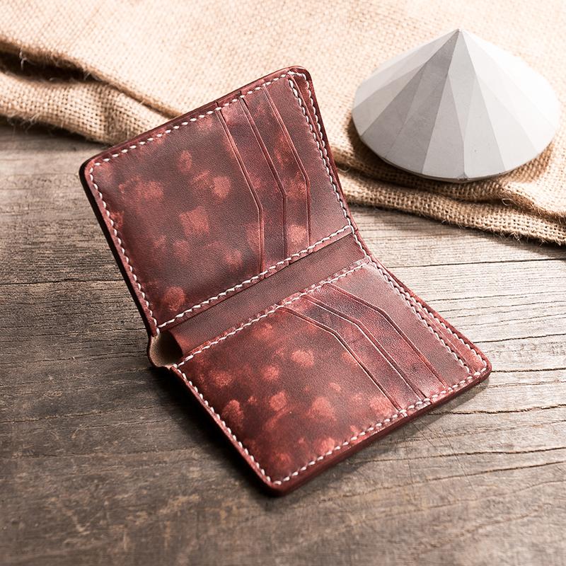 Handmade Leather Mens Cool Slim Leather Wallet Men Small Wallets Bifold for Men