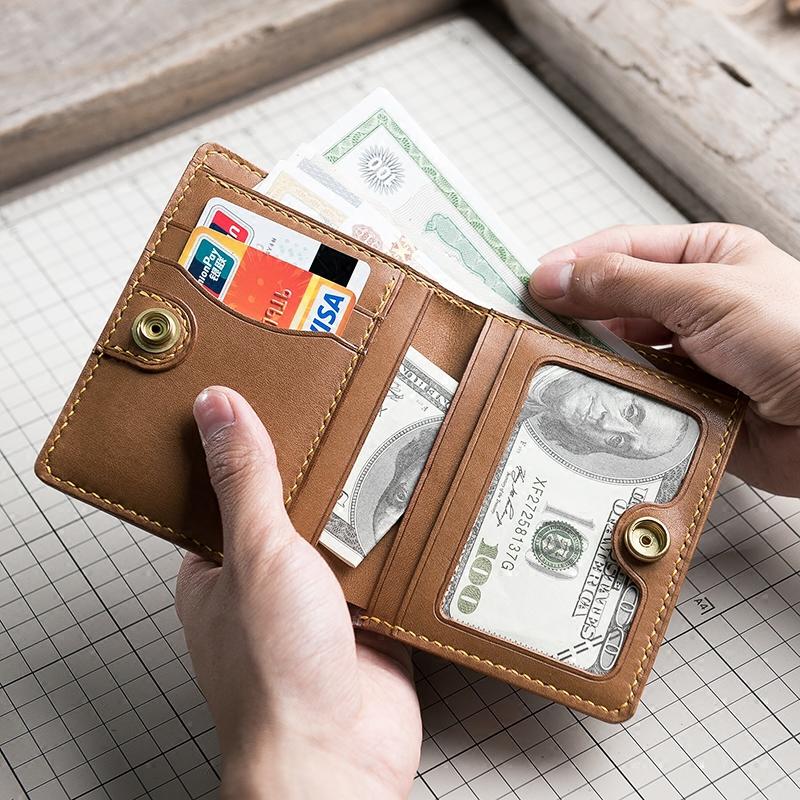 Handmade Leather Mens Cool Slim Leather Wallet Men Small Wallets Bifold for Men