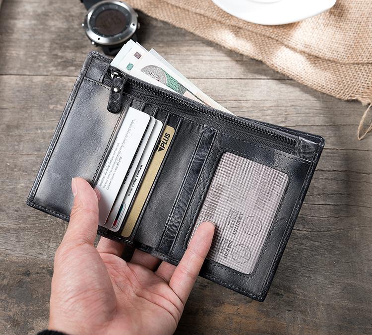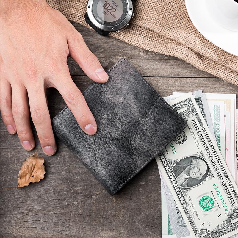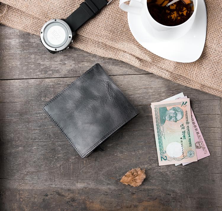 Design: Handmade Leather Mens Cool Slim Leather Wallet Men Small Wallets Bifold for Men