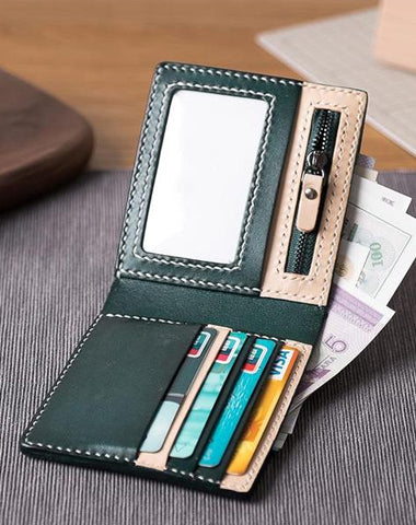 Design: Handmade Leather Mens Cool Slim Leather Wallet Men Small Wallets Bifold for Men Women