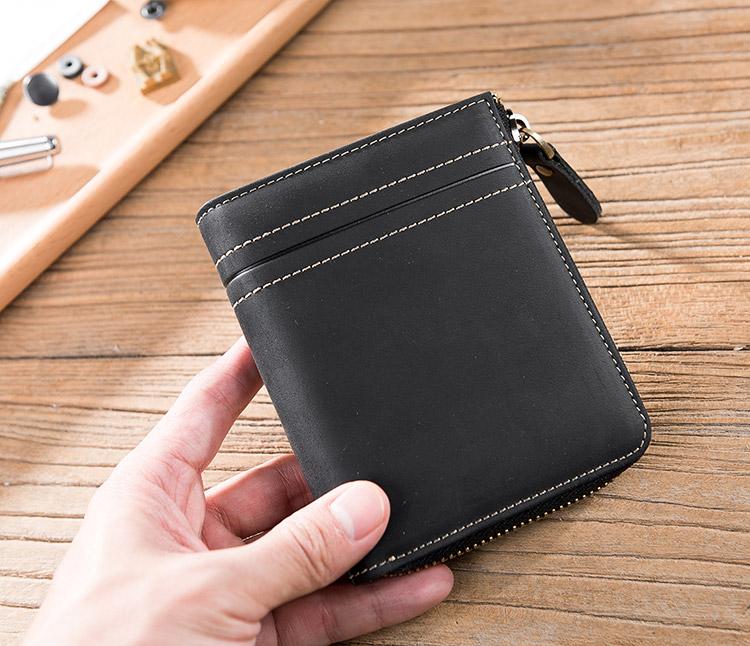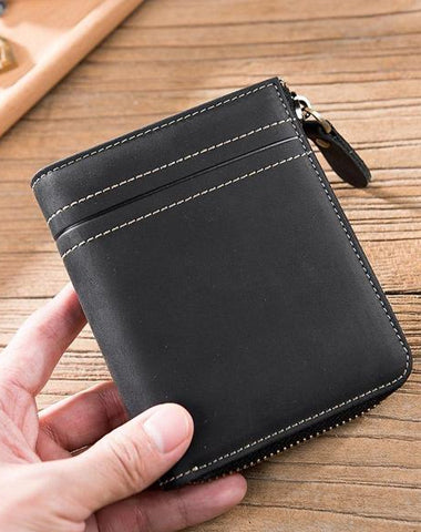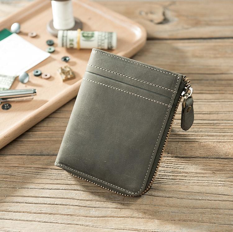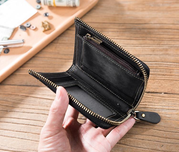 Style: Handmade Leather Mens Cool Slim Leather Zipper Wallet Men Small Wallets Bifold for Men