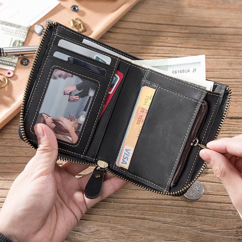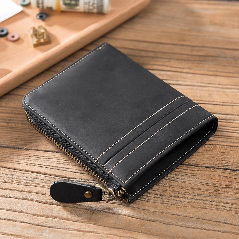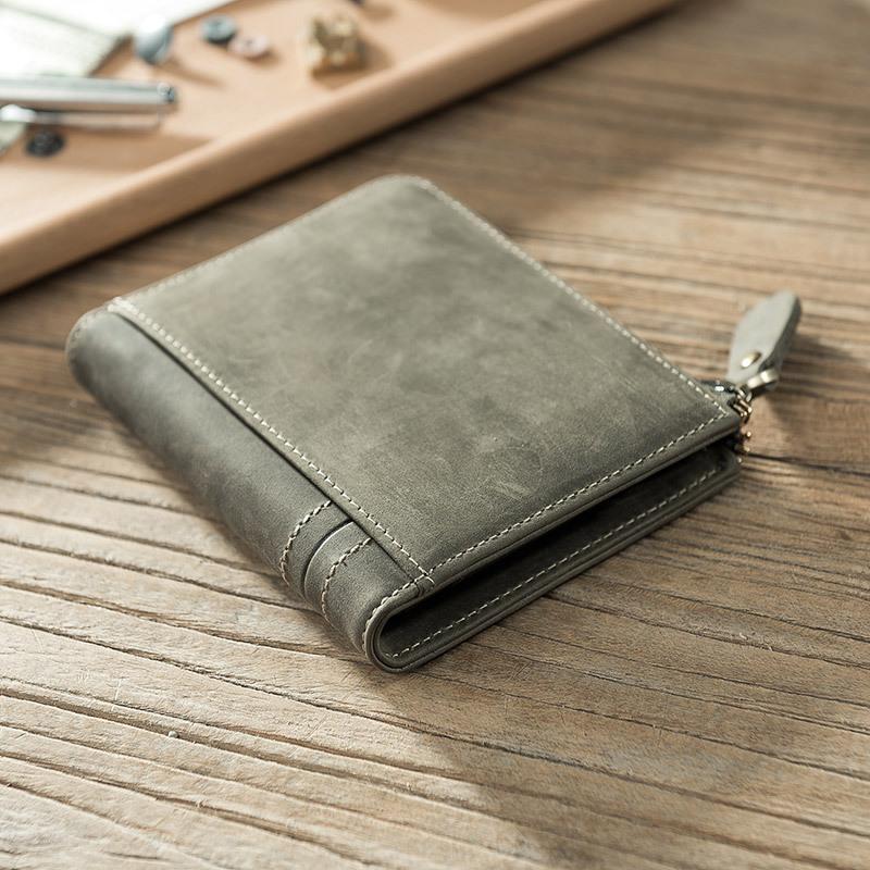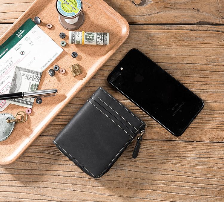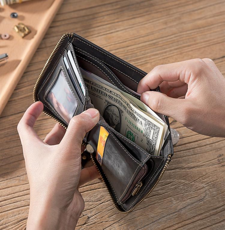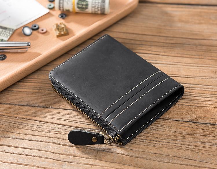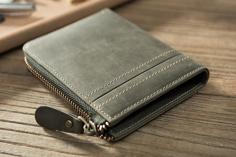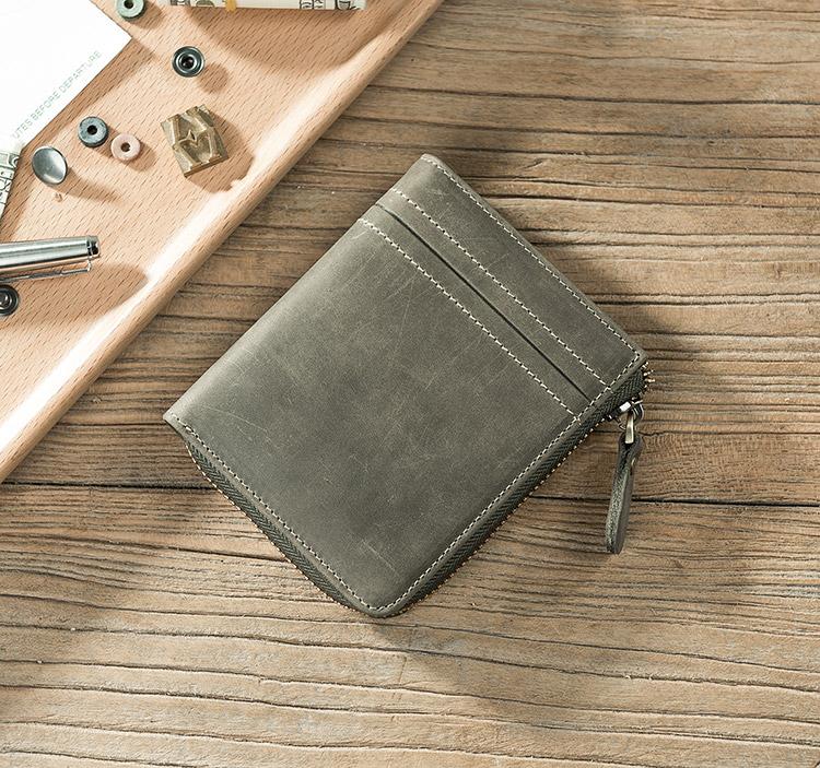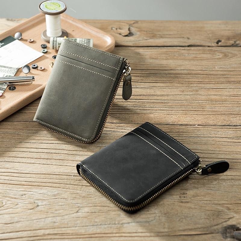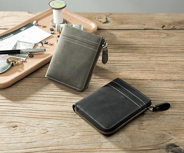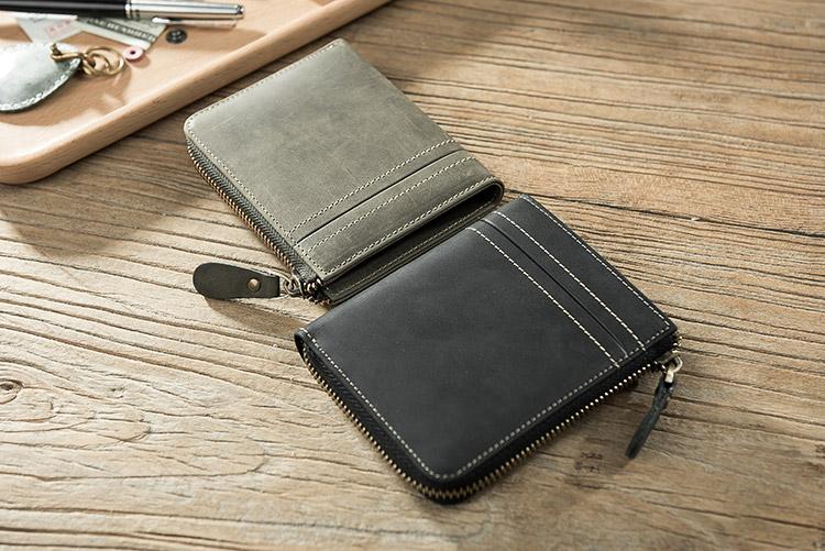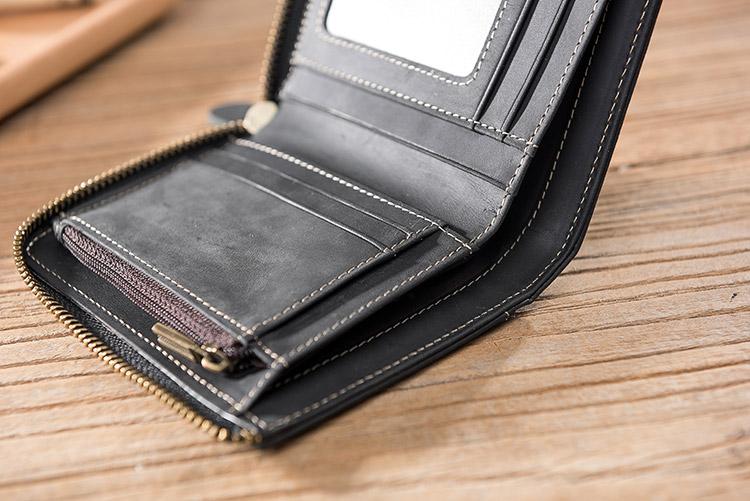 Design: Handmade Leather Mens Cool Slim Leather Zipper Wallet Men Small Wallets Bifold for Men