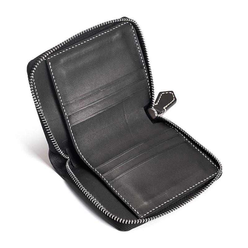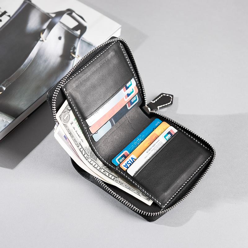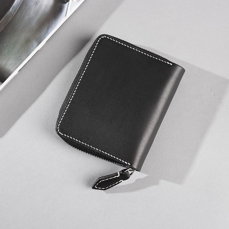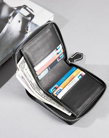 Style: Handmade Leather Mens Cool Slim Leather Zipper Wallet Men Small Wallets Bifold for Men