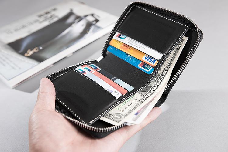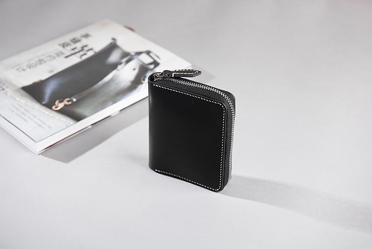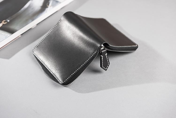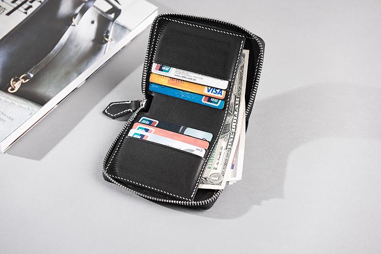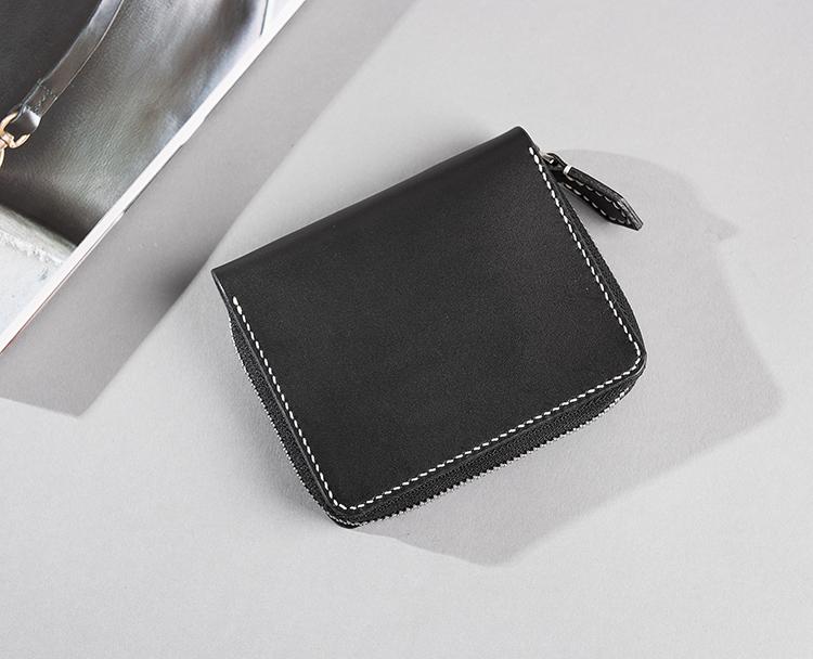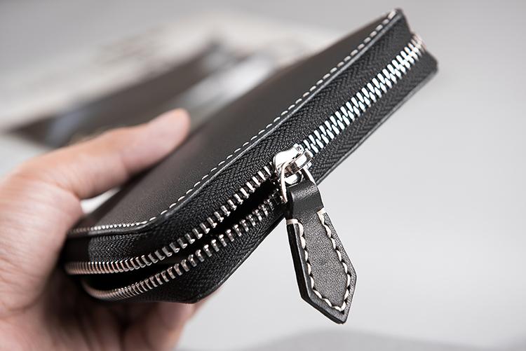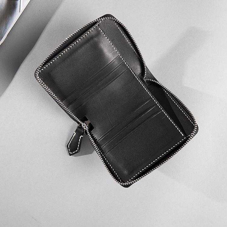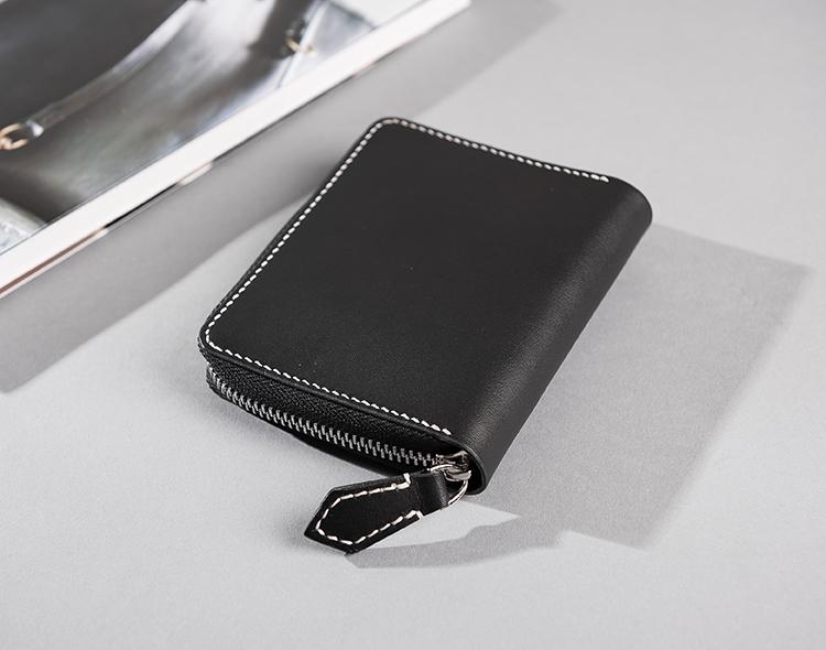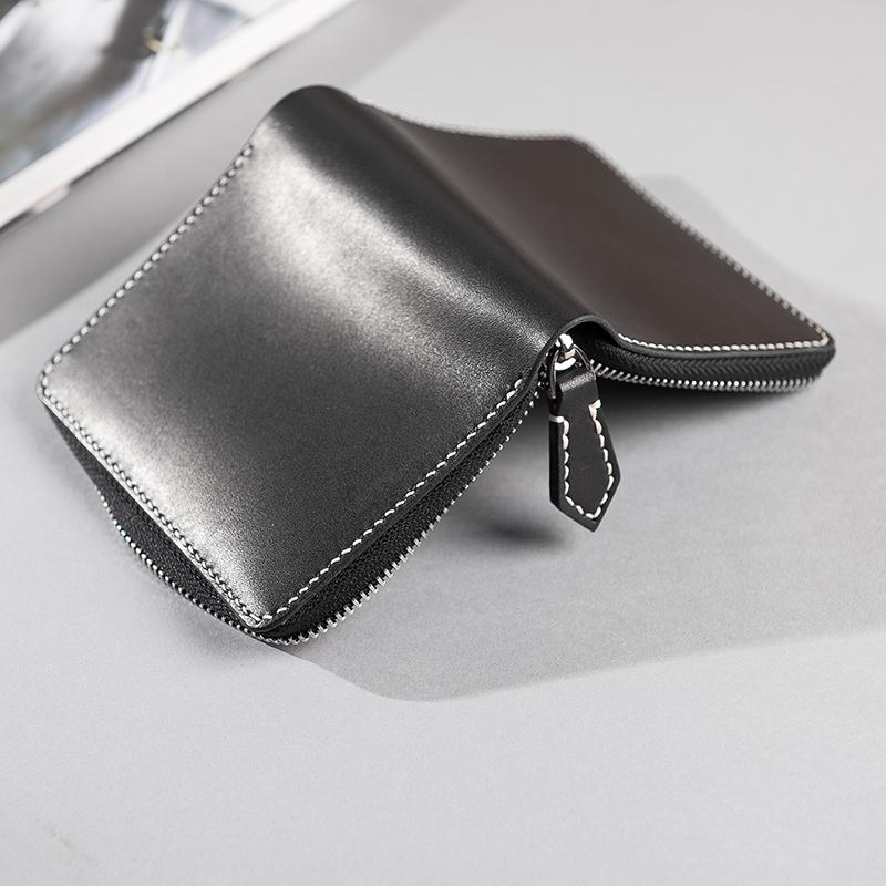 Design: Handmade Leather Mens Cool Slim Leather Zipper Wallet Men Small Wallets Bifold for Men