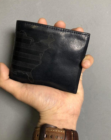 Design: Handmade Leather Mens Cool Slim billfold Leather Wallet Men Small Wallets Bifold for Men