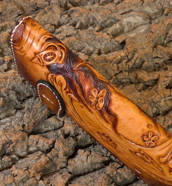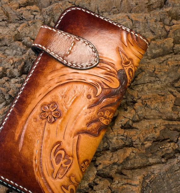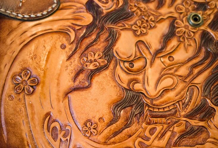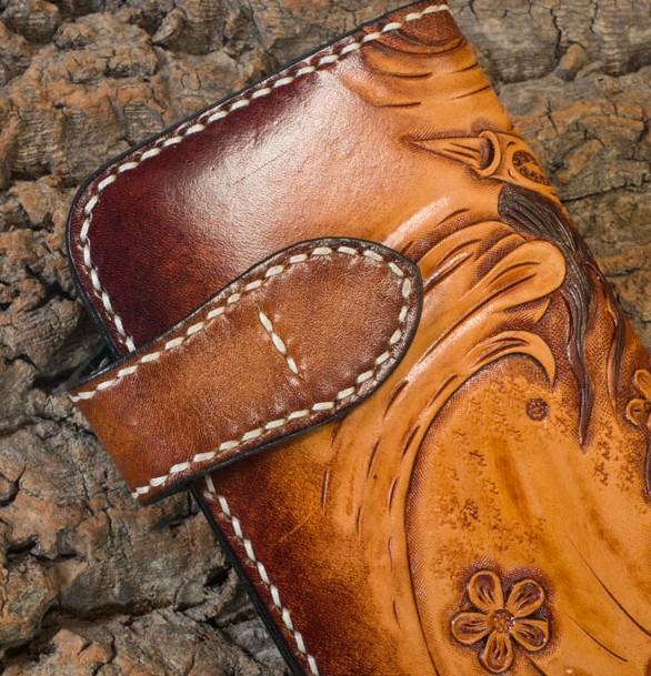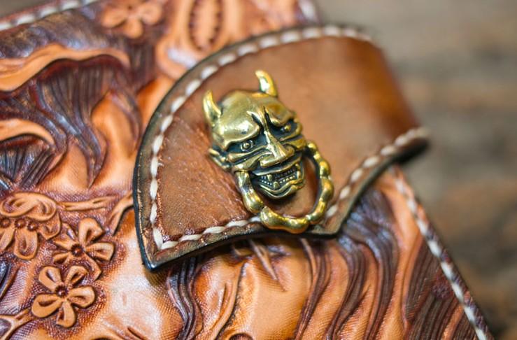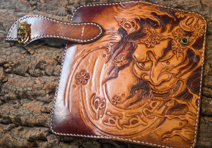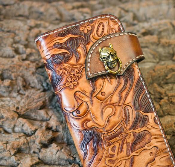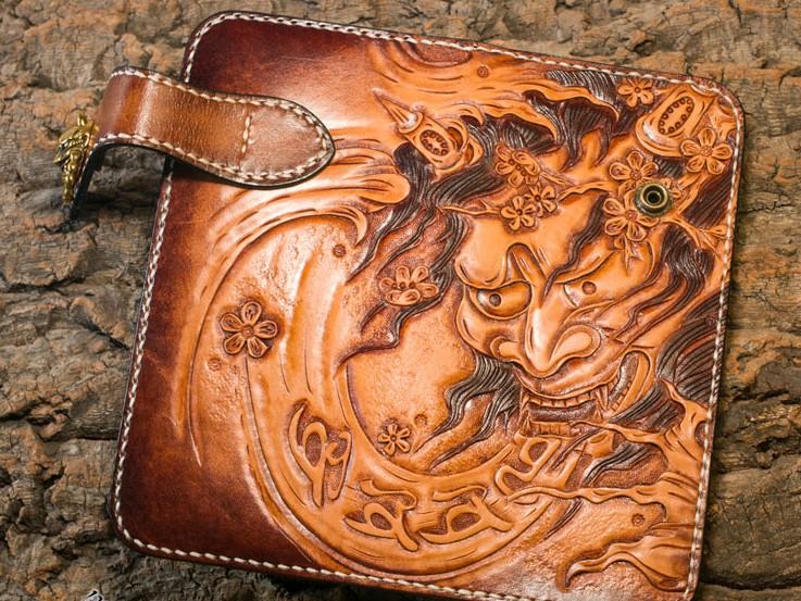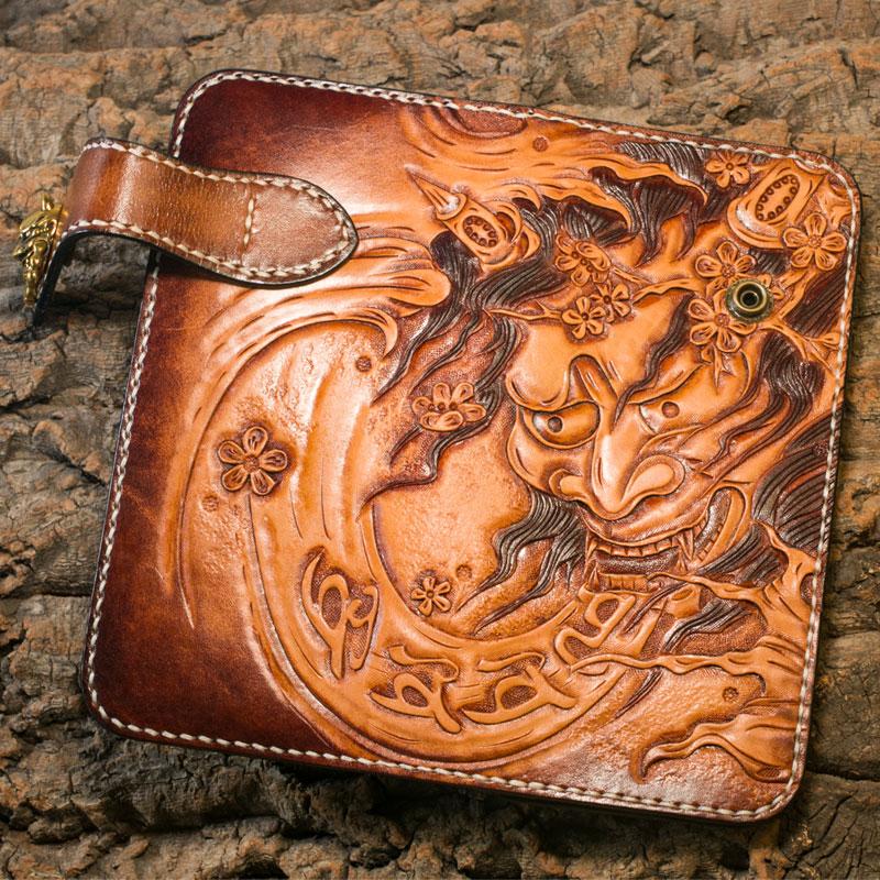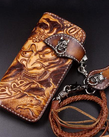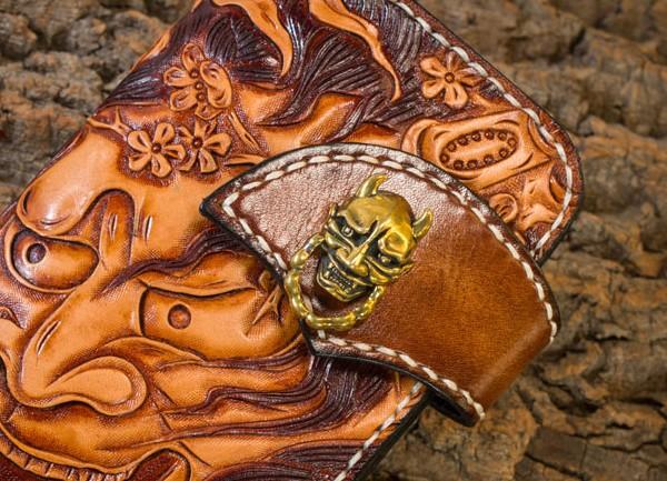 Design: Handmade Leather Mens Cool Tooled Prajna Chain Wallet Biker Trucker Wallet with Chain