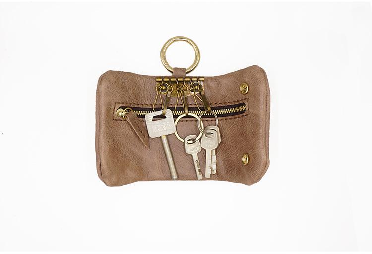 Handmade Leather Mens Key Holders Coin Wallet With Keyring Key Holder Zipper Wallet for Men