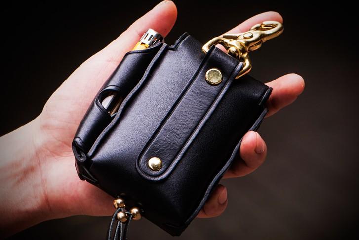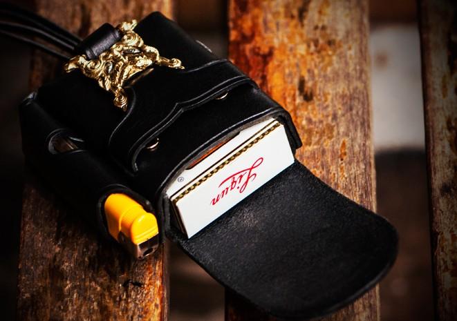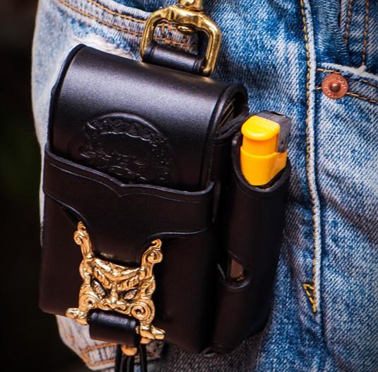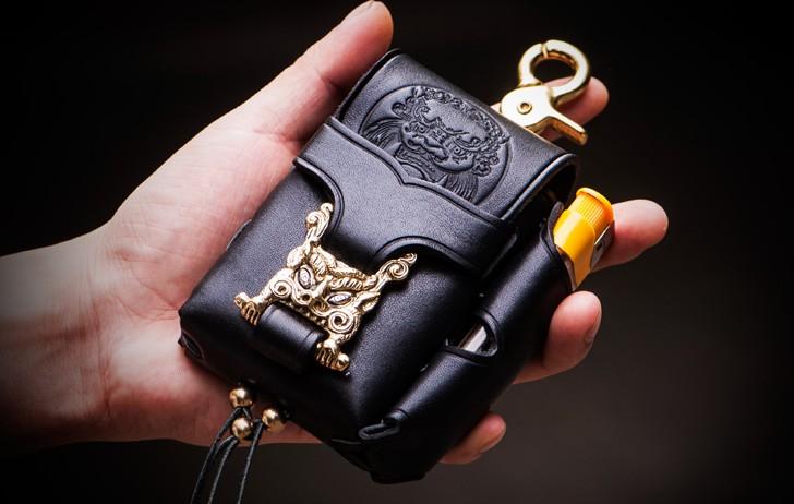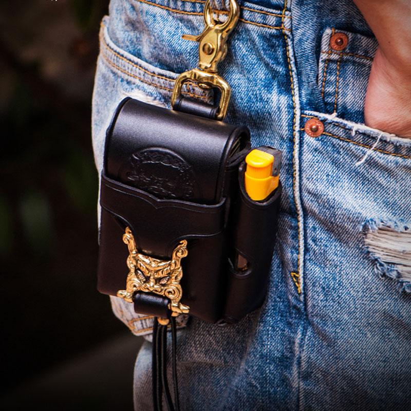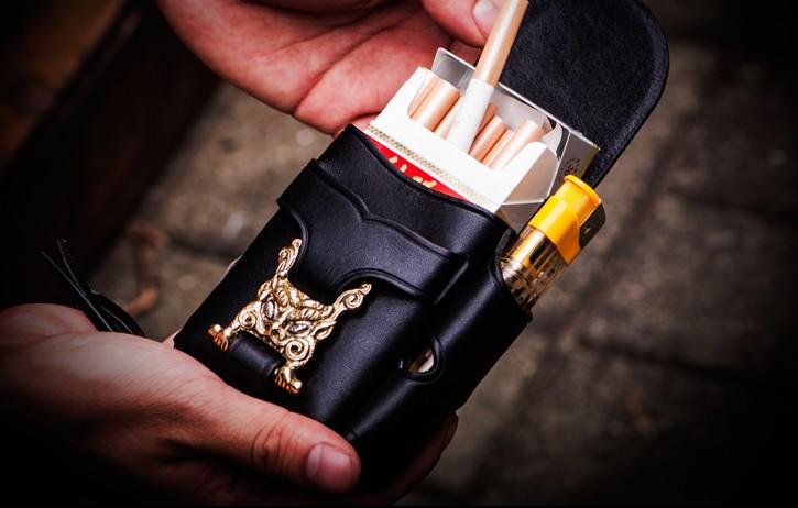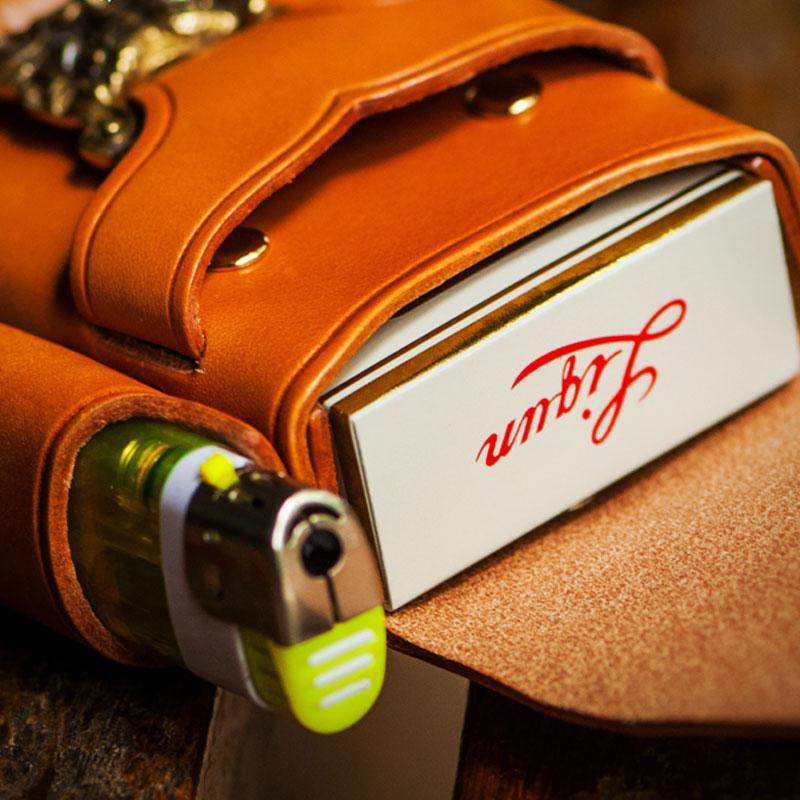 Design: Handmade Leather Mens Leather Cigarette Case Cigarette Box Lighter Pocket Tobacco Pouch