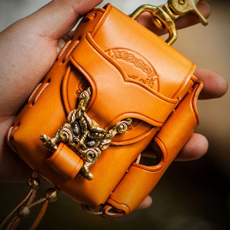 Style: Handmade Leather Mens Leather Cigarette Case Cigarette Box Lighter Pocket Tobacco Pouch