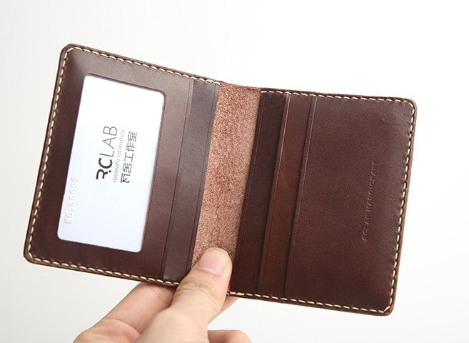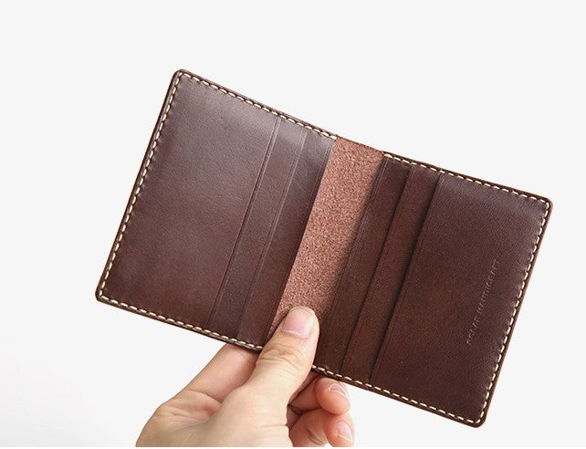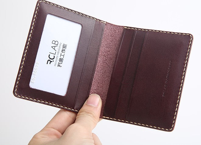 Design: Handmade Leather Mens Slim License Wallet Front Pocket Wallet Slim Card Wallet for Men